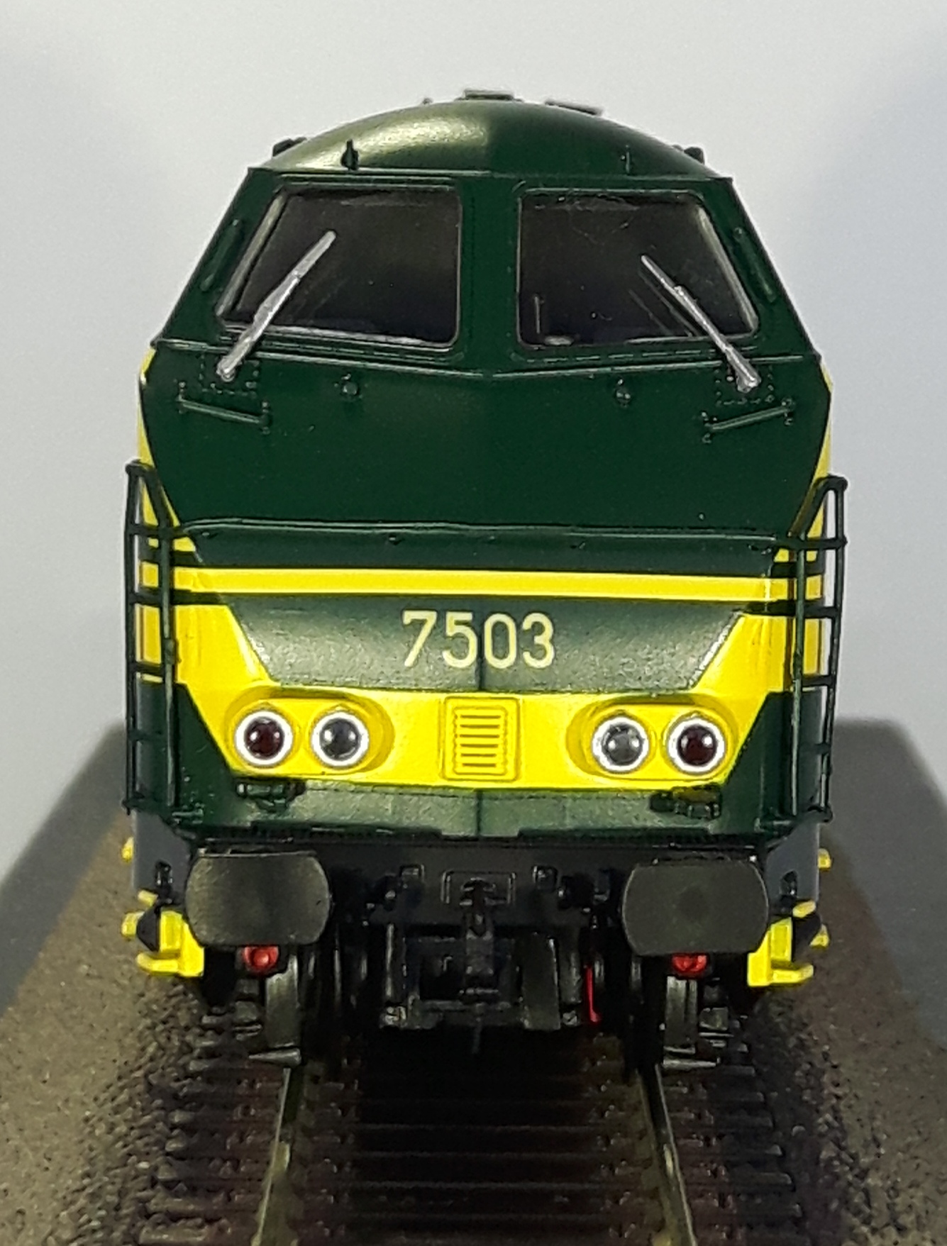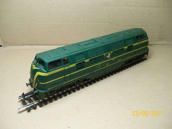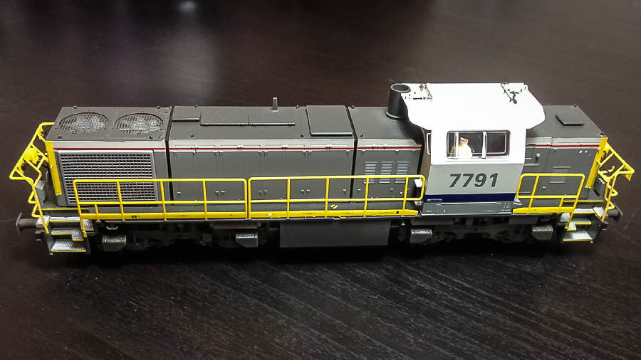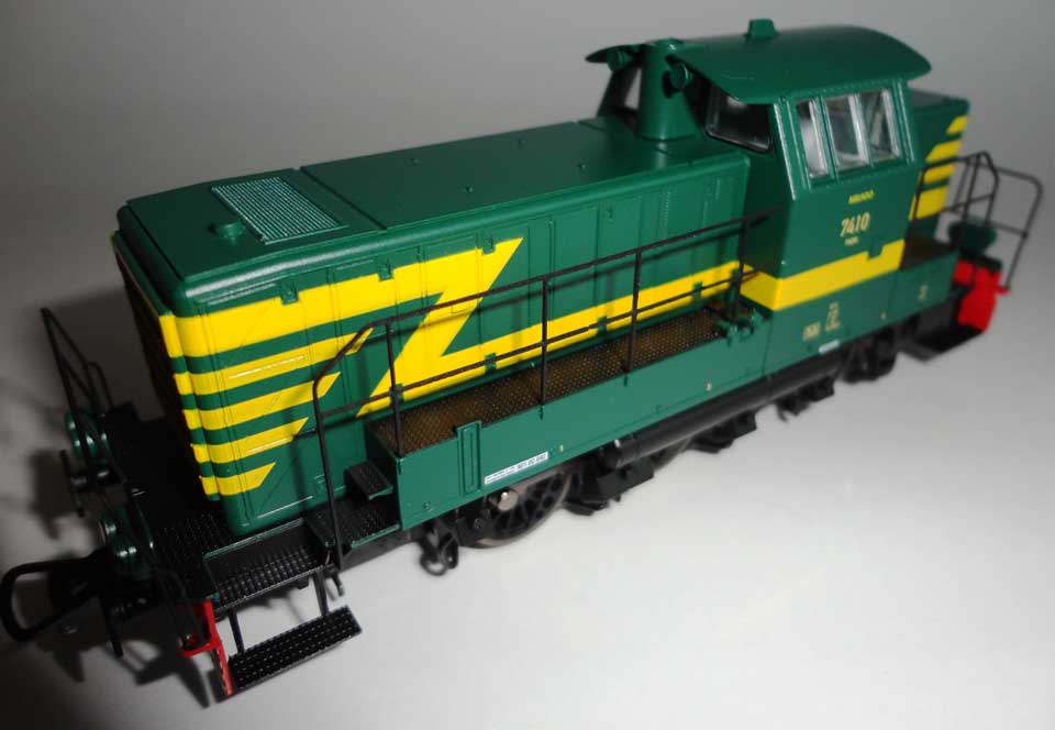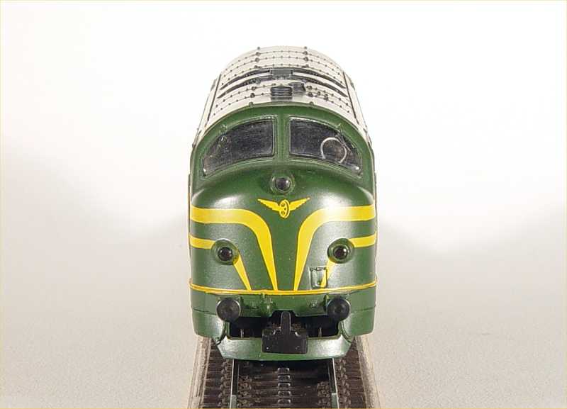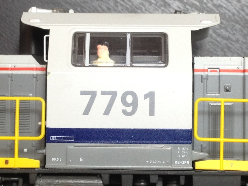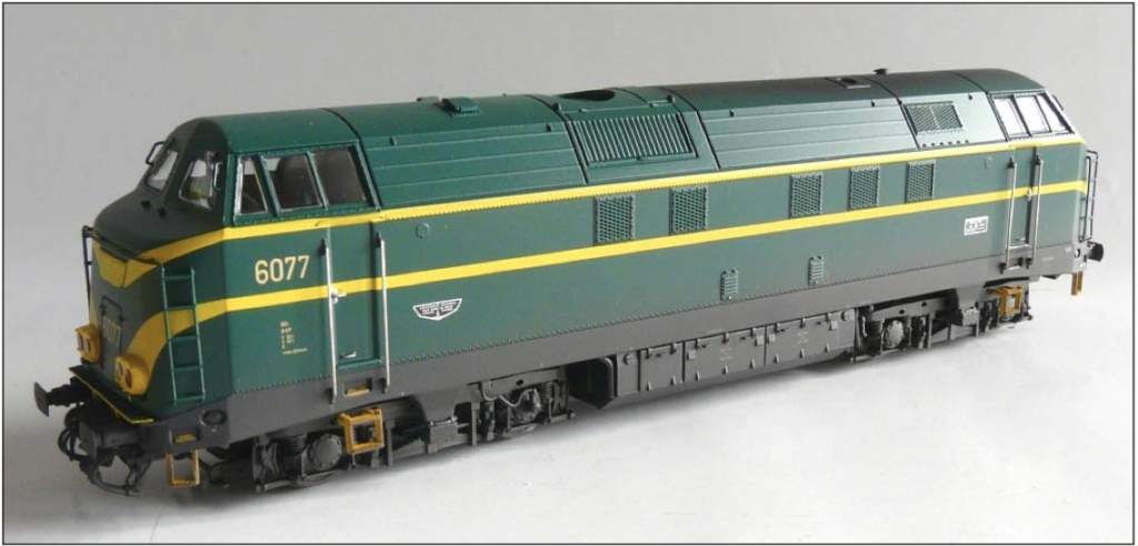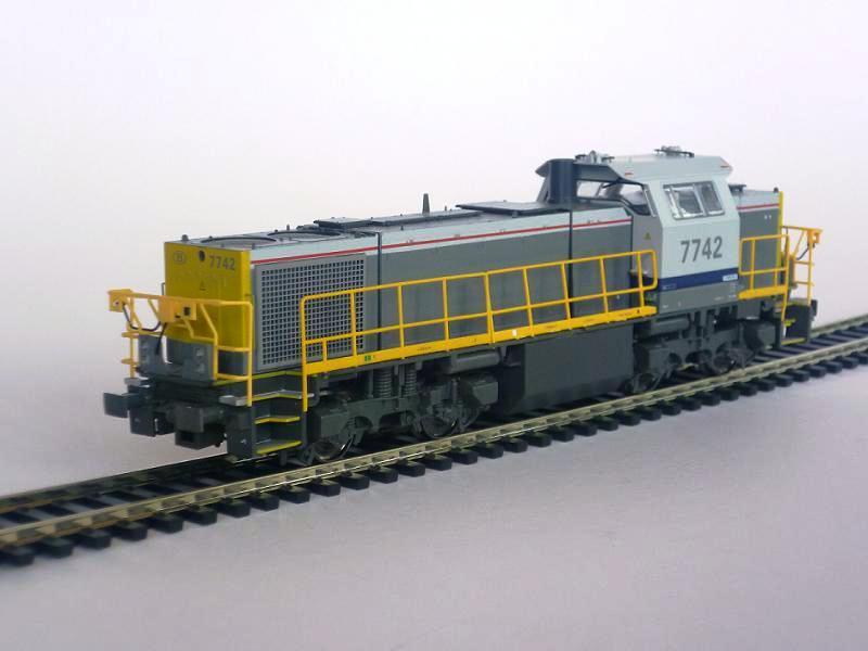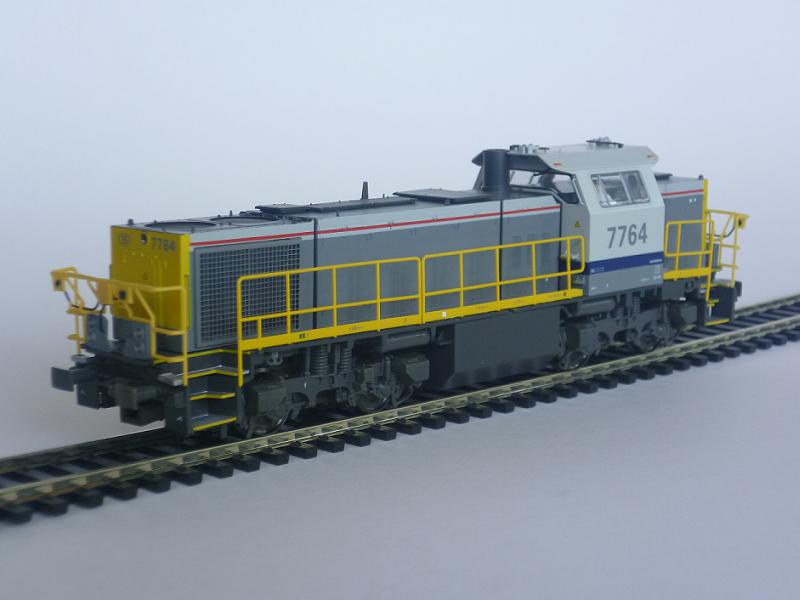 | | | T285 = 7757, du dépôt de Kinkempois, Locomotive diesel hydraulique de type BB, livrée dite nouvelle livrée, grise, faces avant jaunes, ligne bleue au-dessus du châssis, Ep. V, série spéciale de ATF Kinkempois, 2 exemplaires, DC (upd 20/06/2015) |