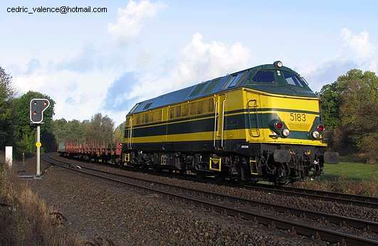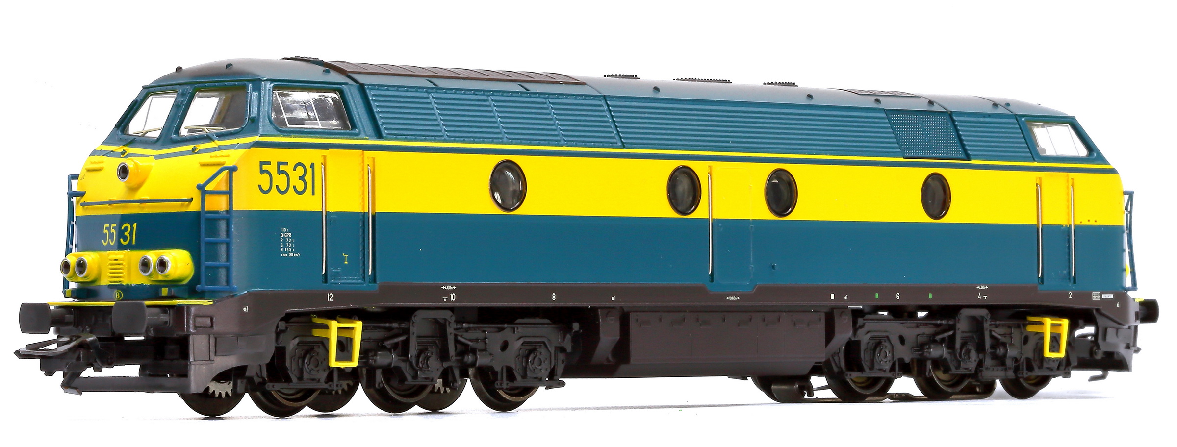 | | | 20.100 de 2010 = 5515, du dépôt de Kinkempois, Locomotive diesel électrique de type Co'Co', châssis noir, livrée bleue-jaune, auto-collant magelan, Ep. V, DC (upd 13/08/2016) |