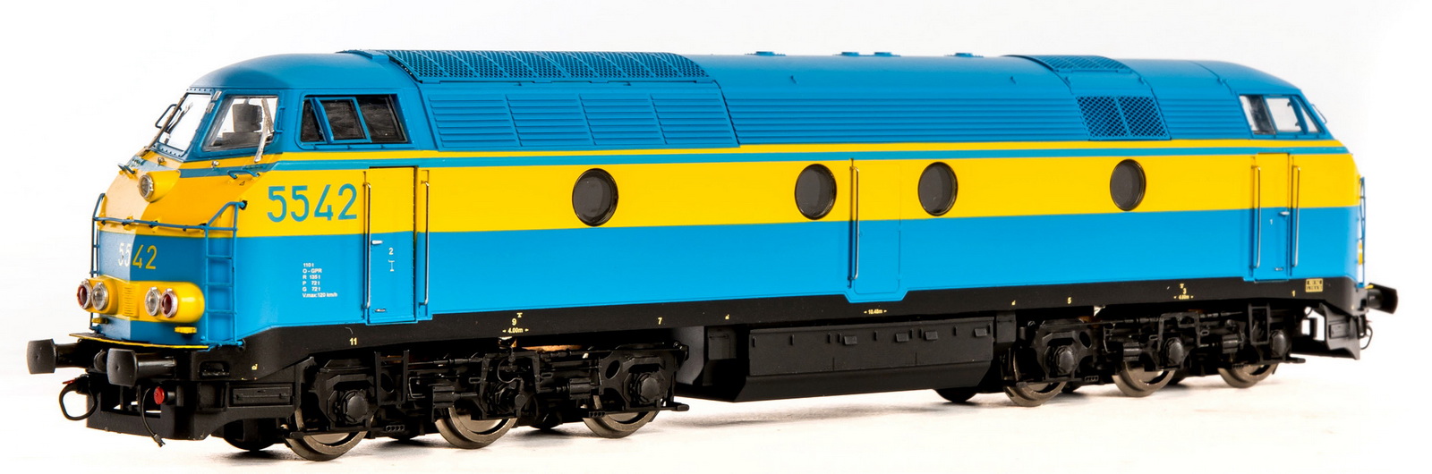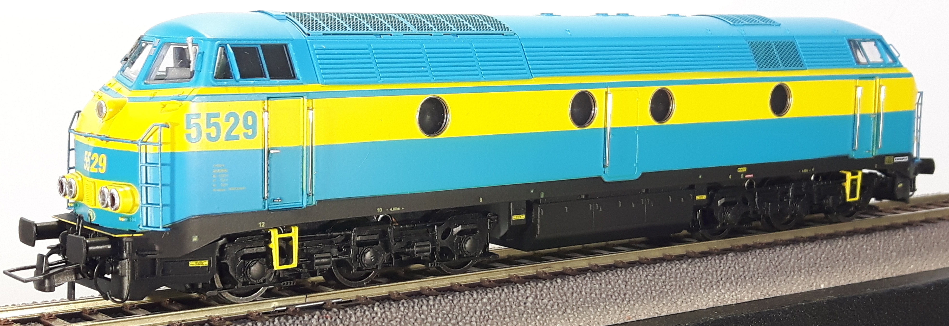 | | | 20.804 de 2011 = 5529, du dépôt de Kinkempois, Locomotive diesel électrique de type Co'Co', châssis noir, livrée bleue-jaune, Ep. V, DCC (upd 15/10/2019) |