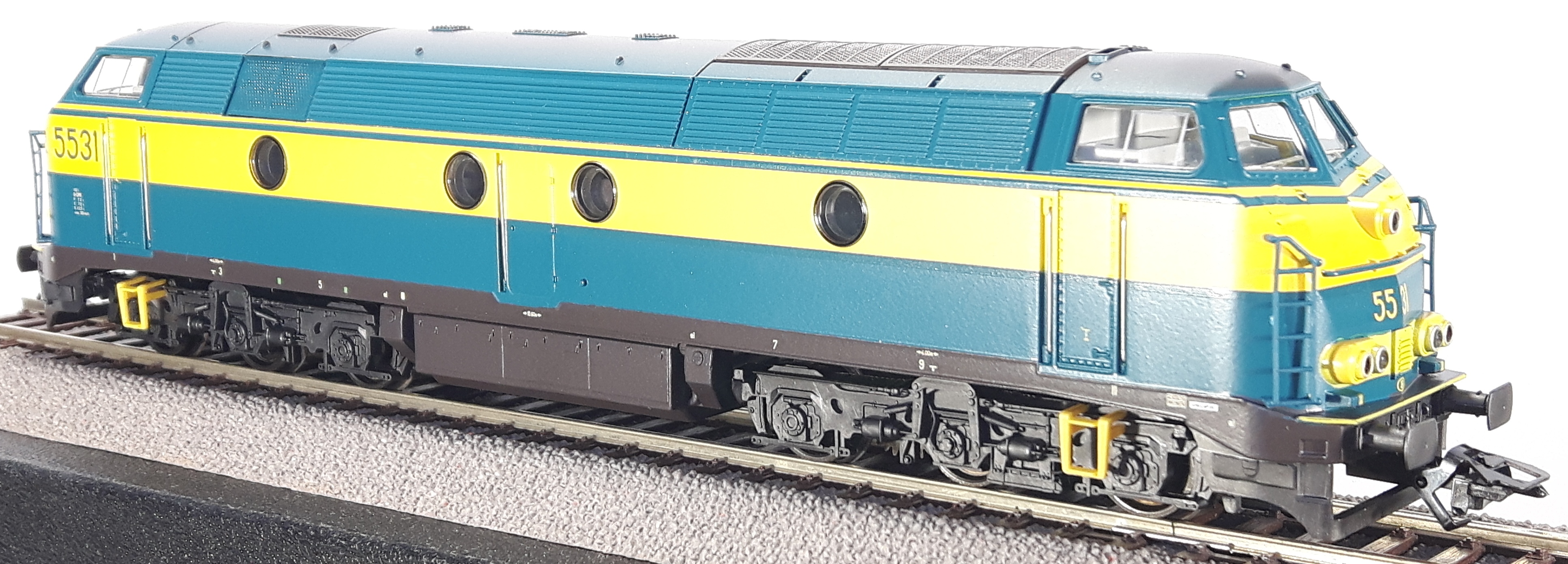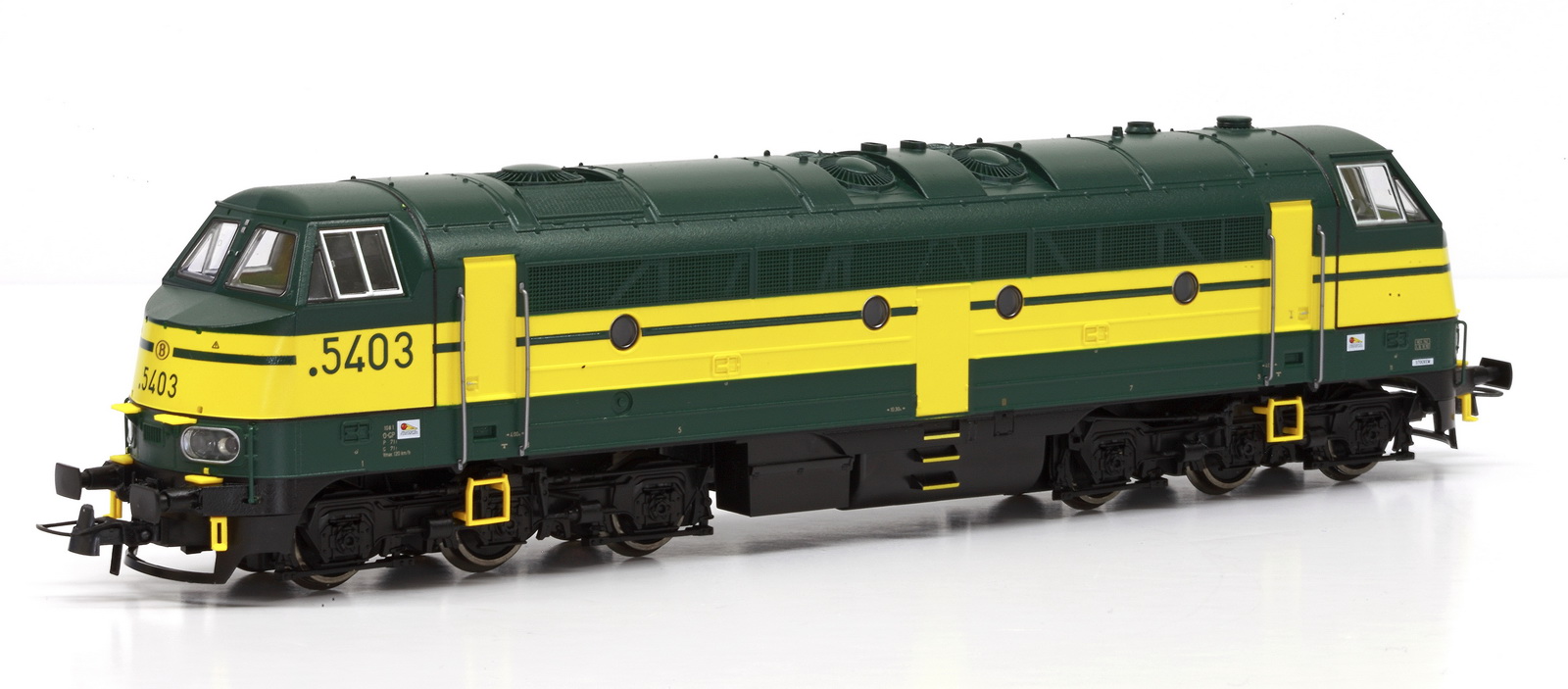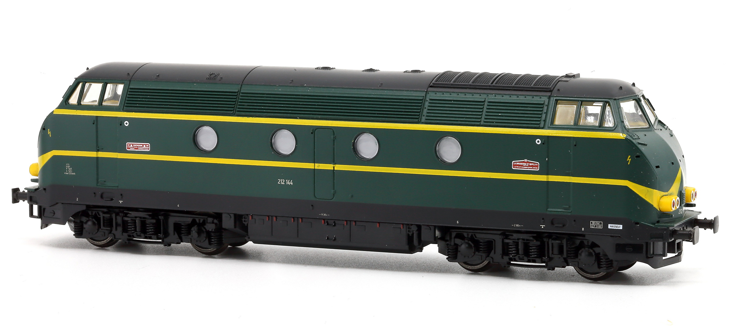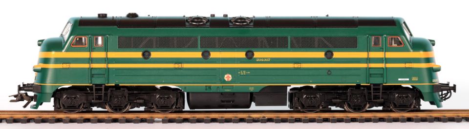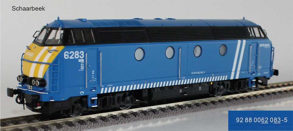 | | | T285 4924 = 7800, du dépôt de Merelbeke, Locomotive diesel hydraulique de type BB, livrée dite nouvelle livrée, grise, faces avant jaunes, ligne bleue au-dessus du châssis, Ep. V, 101 exemplaires, AC, Digital Sound (upd 27/01/2019) |