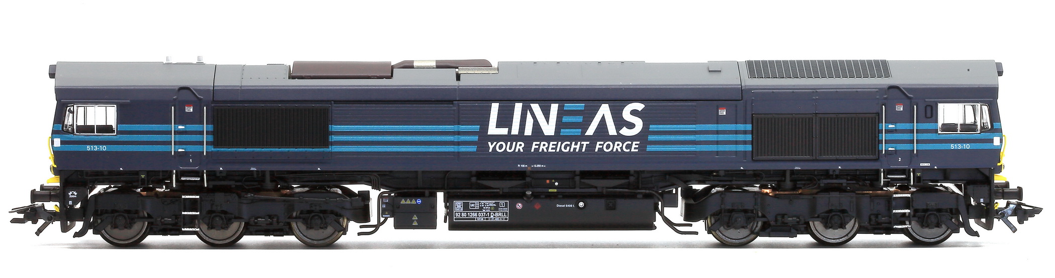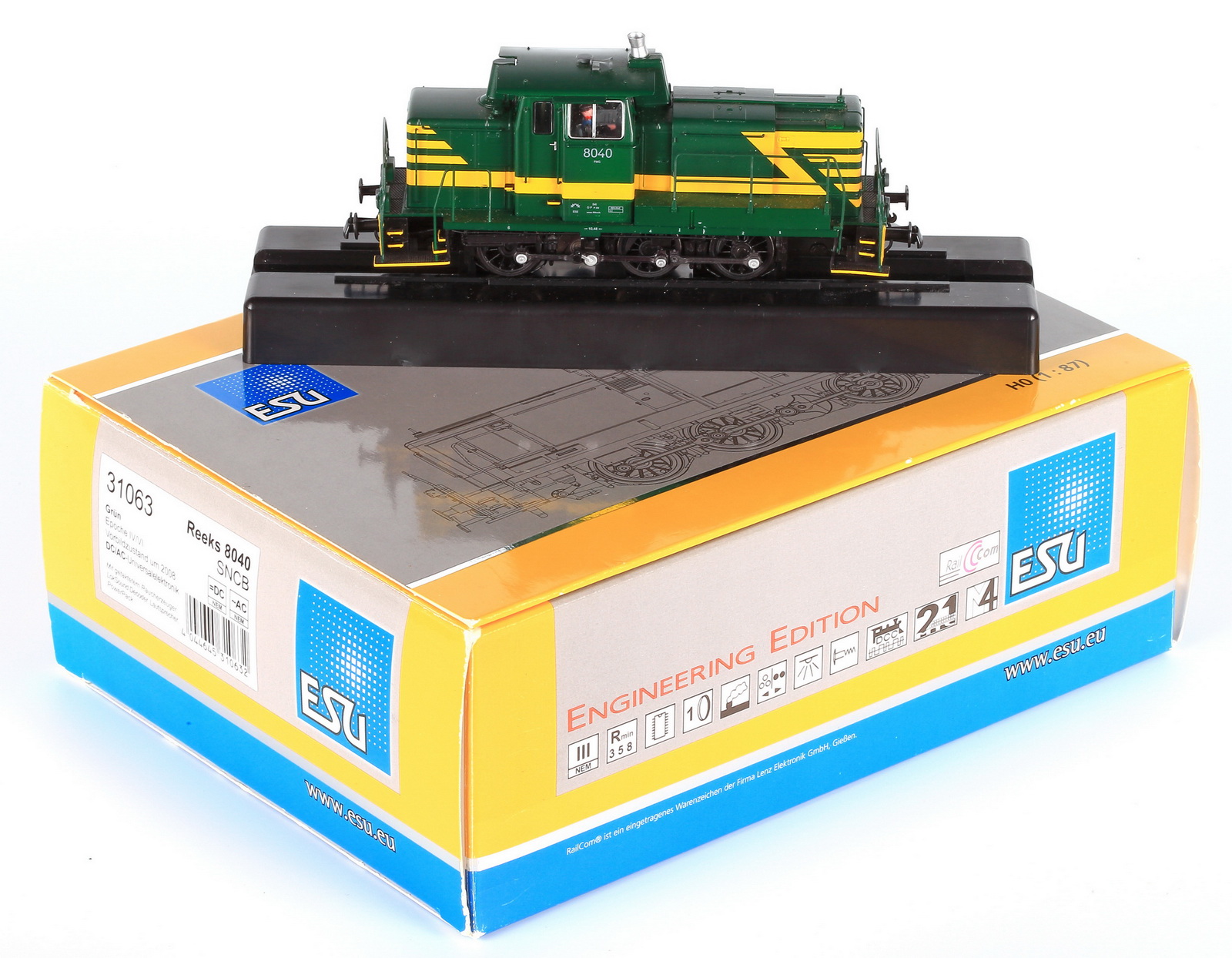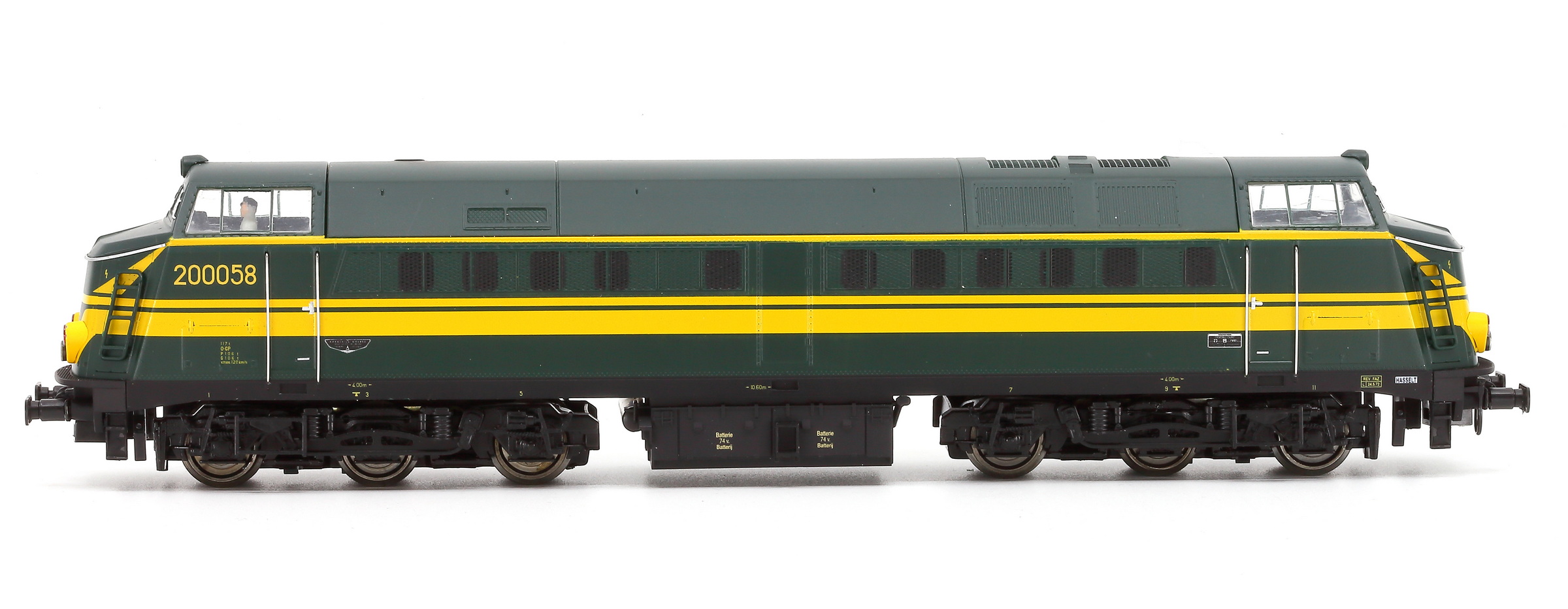 | | | T285 4924 = 7800, du dépôt de Merelbeke, Locomotive diesel hydraulique de type BB, livrée dite nouvelle livrée, grise, faces avant jaunes, ligne bleue au-dessus du châssis, Ep. V, 101 exemplaires, AC, Digital Sound (upd 27/01/2019) |