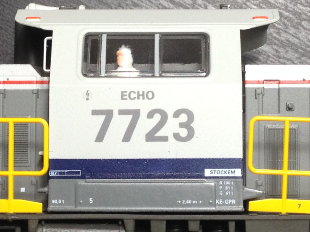 | | | T285 5754 = 7723 ECHO, du dépôt de Stockem, Locomotive diesel hydraulique de type BB, livrée dite nouvelle livrée, grise, faces avant jaunes, ligne bleue au-dessus du châssis, Ep. V, AC, Digital Sound (upd 26/06/2015) |
