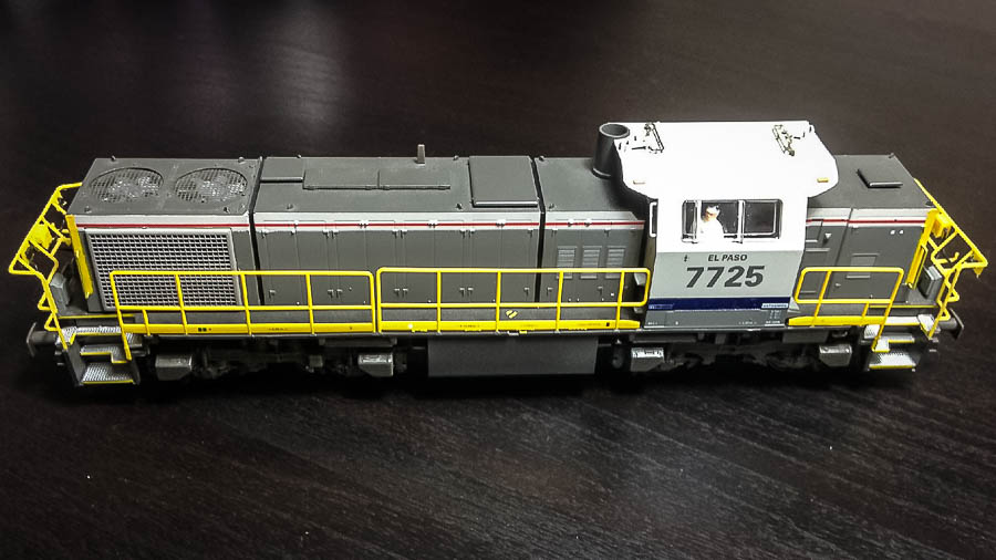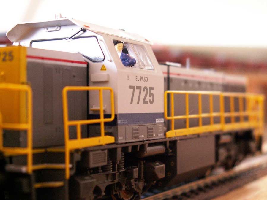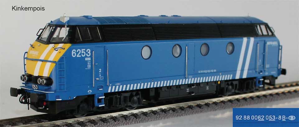 | | | T285 4688 = 7725 EL PASO, du dépôt de Antwerpen, Locomotive diesel hydraulique de type BB, livrée dite nouvelle livrée, grise, faces avant jaunes, ligne bleue au-dessus du châssis, Ep. V, 192 exemplaires, DCC, Sound (upd 28/07/2019) |