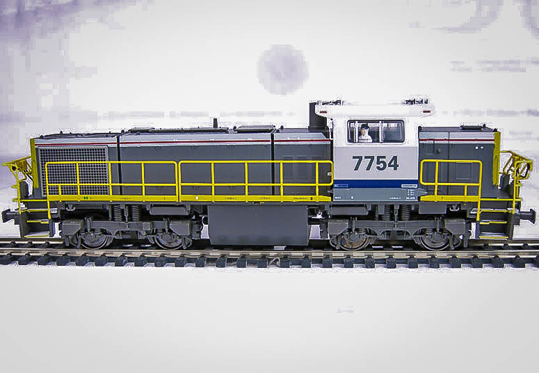 | | | T285 7255 = 7751, du dépôt de Kinkempois, Locomotive diesel hydraulique de type BB, livrée dite nouvelle livrée, grise, faces avant jaunes, ligne bleue au-dessus du châssis, Ep. V, AC, Digital Sound (upd 01/06/2024) |