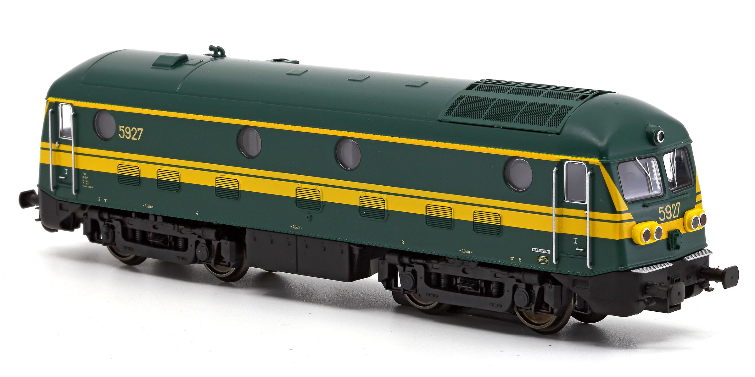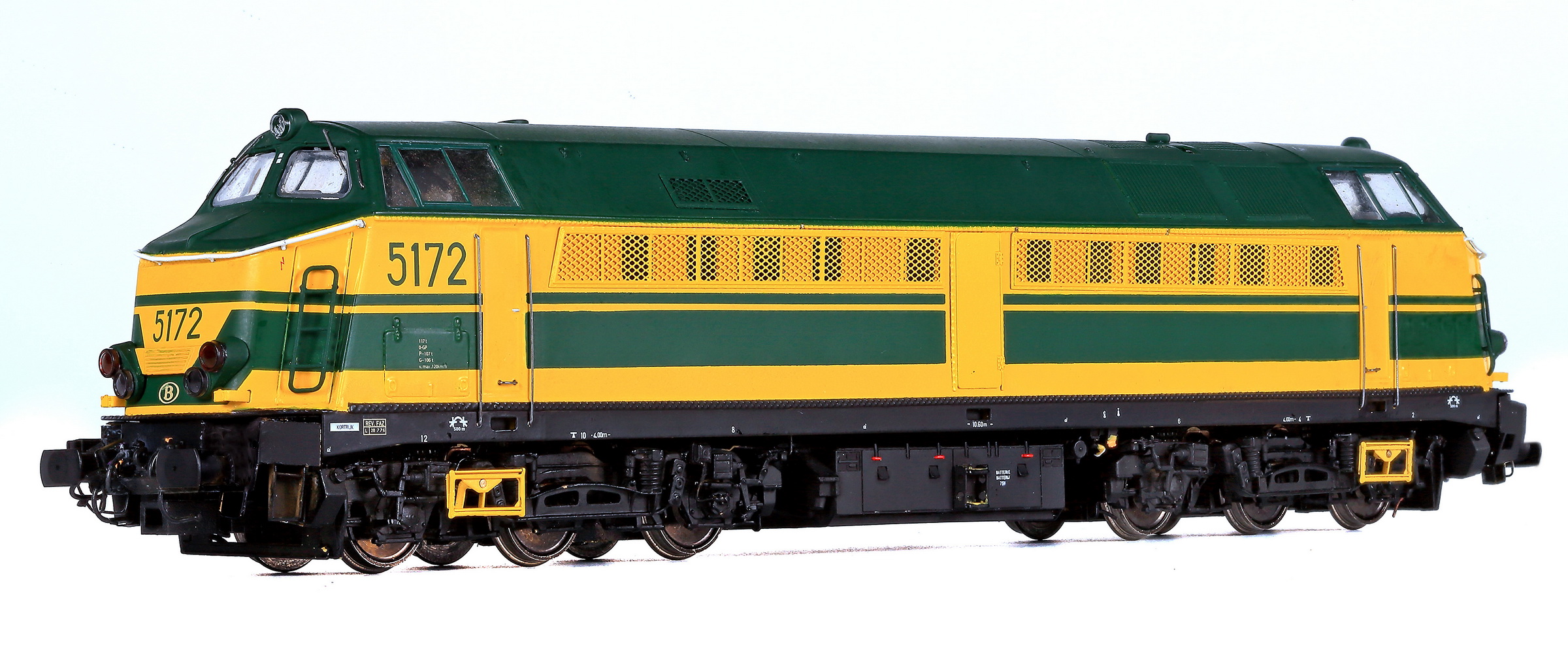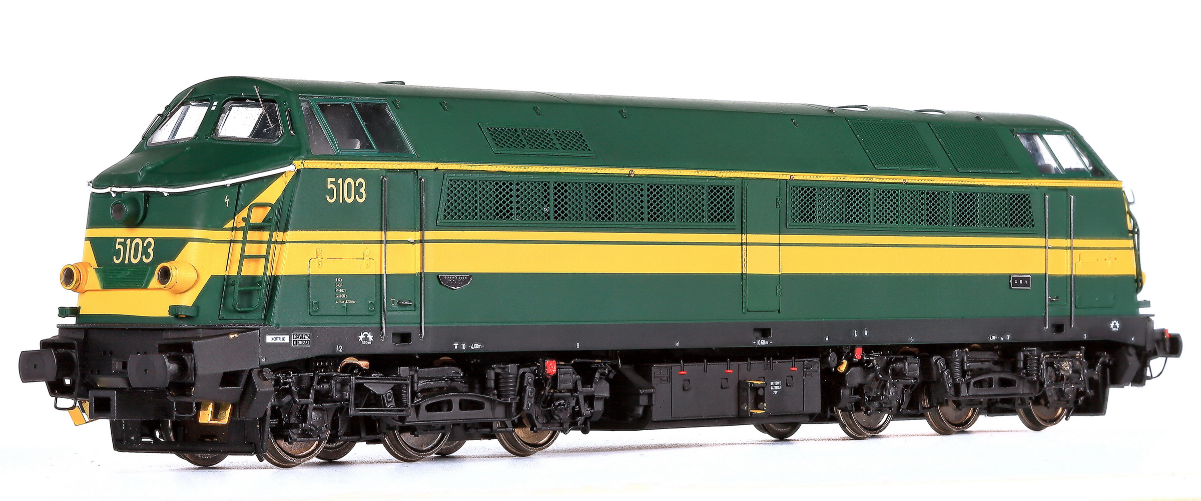 | | | VB-3606-03 de 2025 = 5191, du dépôt de Kortrijk, Locomotive diesel électrique de type Co'Co', châssis noir, livrée verte 1970, 5 phares, phare supérieur occulté, plaques constructeur, Ep. IV, DCC Sound (upd 10/10/2025) |