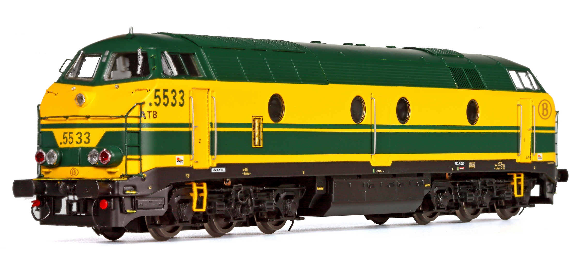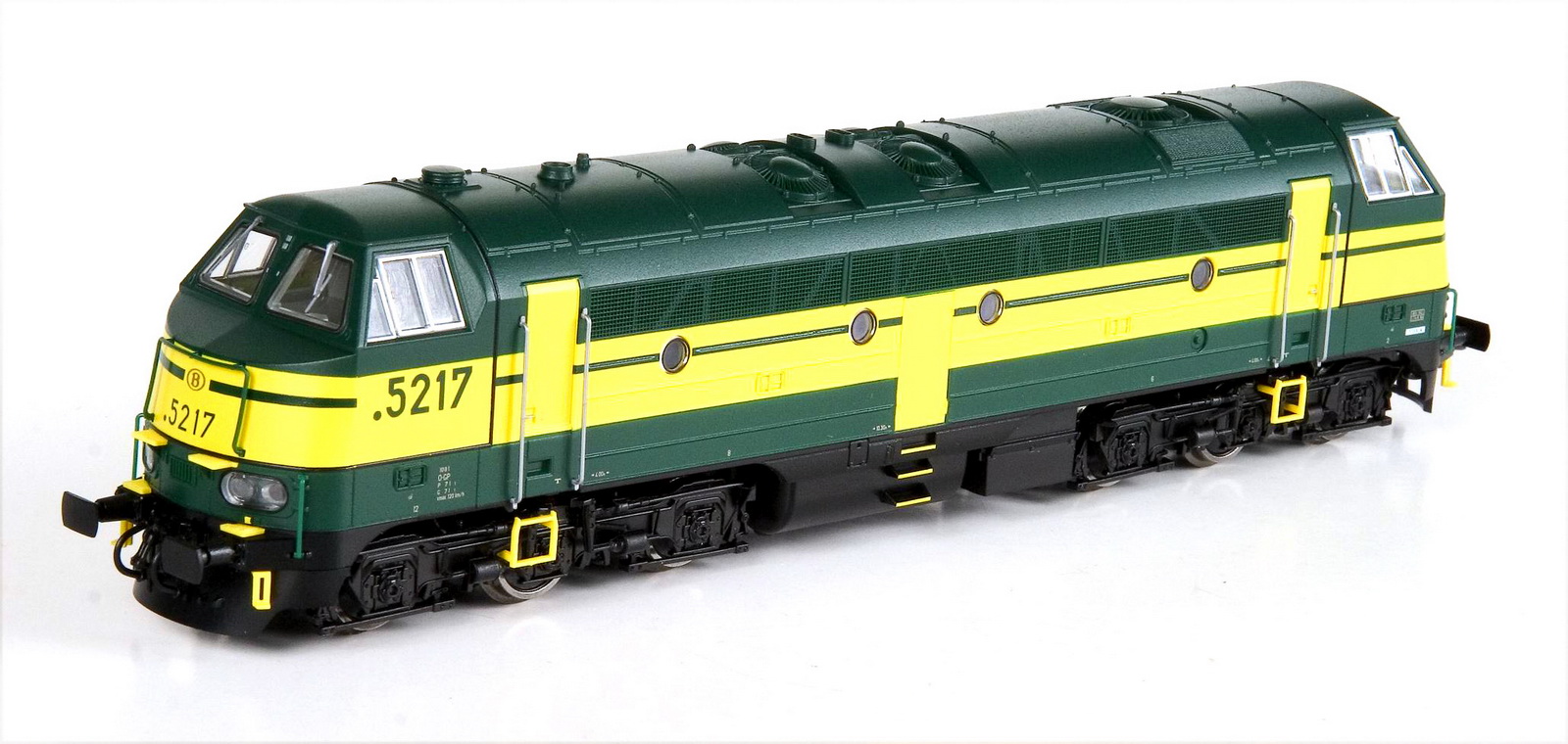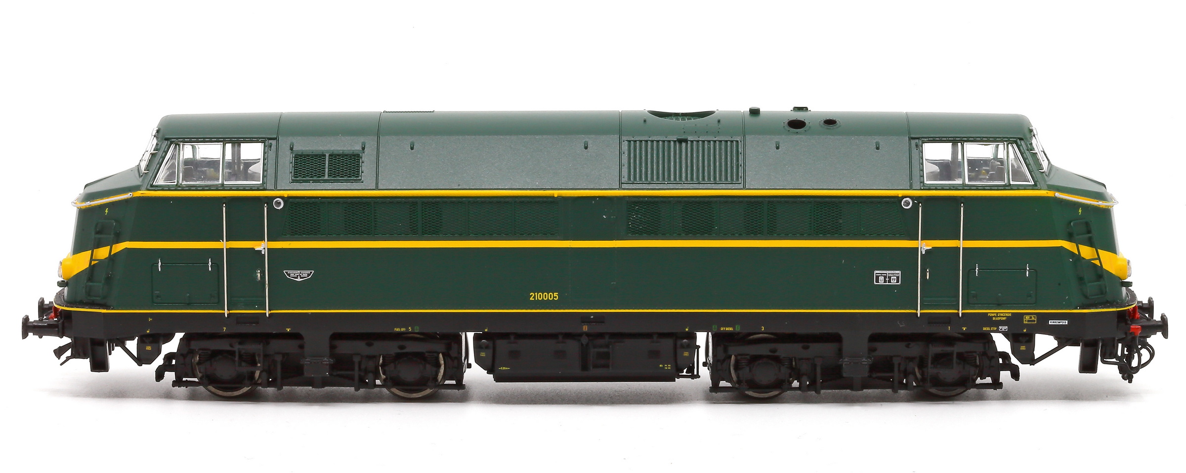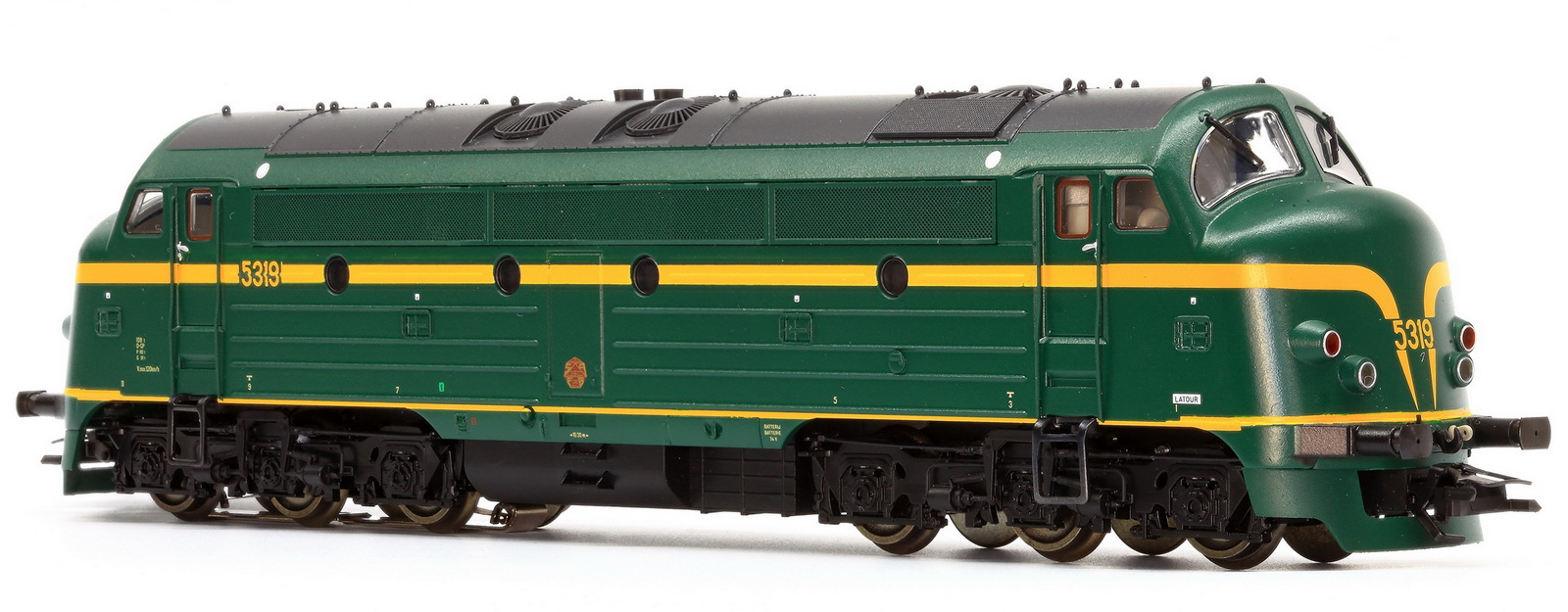 | | | VB-3606-03 de 2025 = 5191, du dépôt de Kortrijk, Locomotive diesel électrique de type Co'Co', châssis noir, livrée verte 1970, 5 phares, phare supérieur occulté, plaques constructeur, Ep. IV, DCC Sound (upd 10/10/2025) |