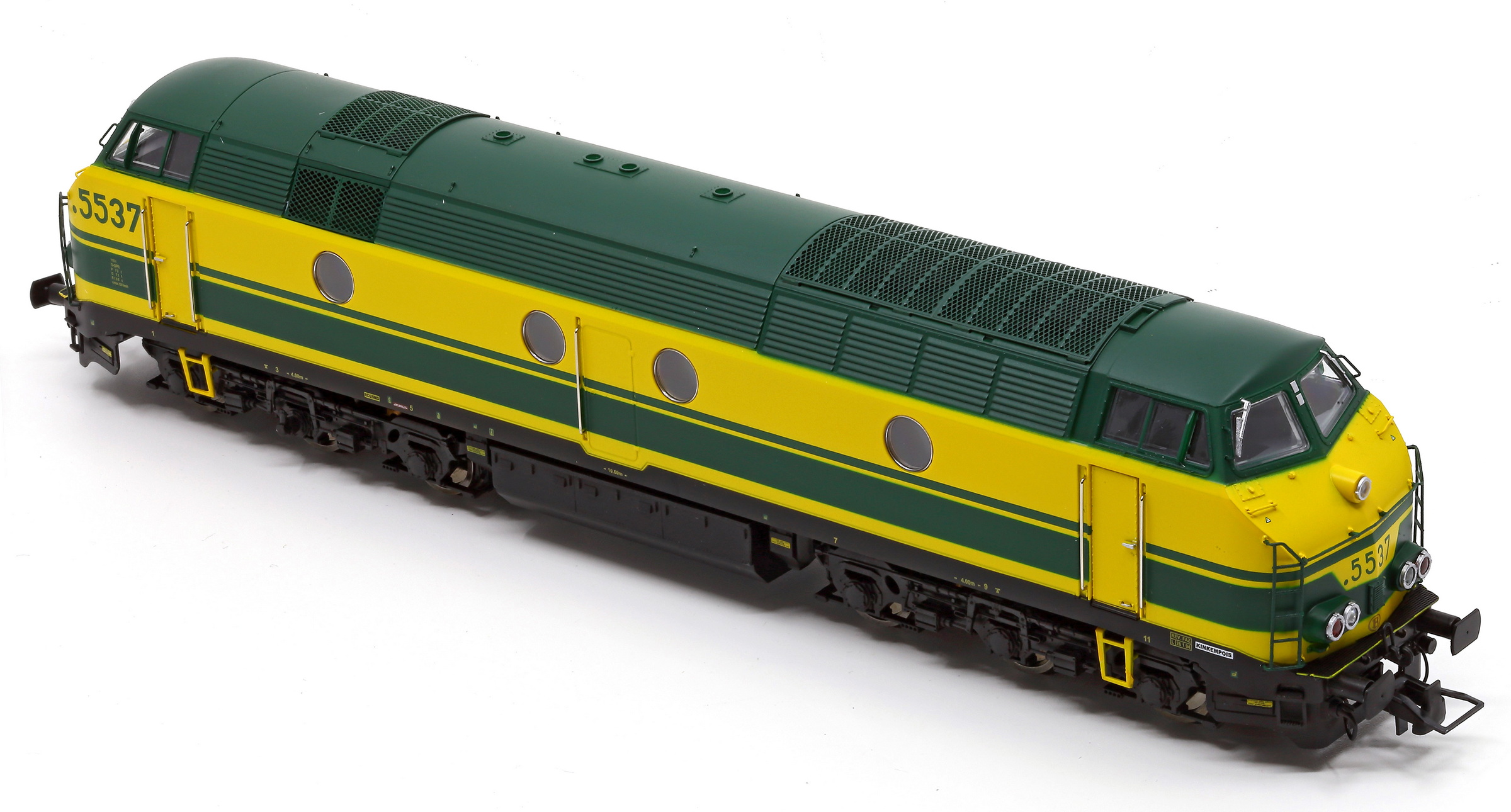 | | | 20.806 de 2011 = .5537, du dépôt de Kinkempois, Locomotive diesel électrique de type Co'Co', livrée jaune, toit vert, bandeau et bandes verts, double phares, Ep. IV - V, DCC (upd 10/10/2025) |