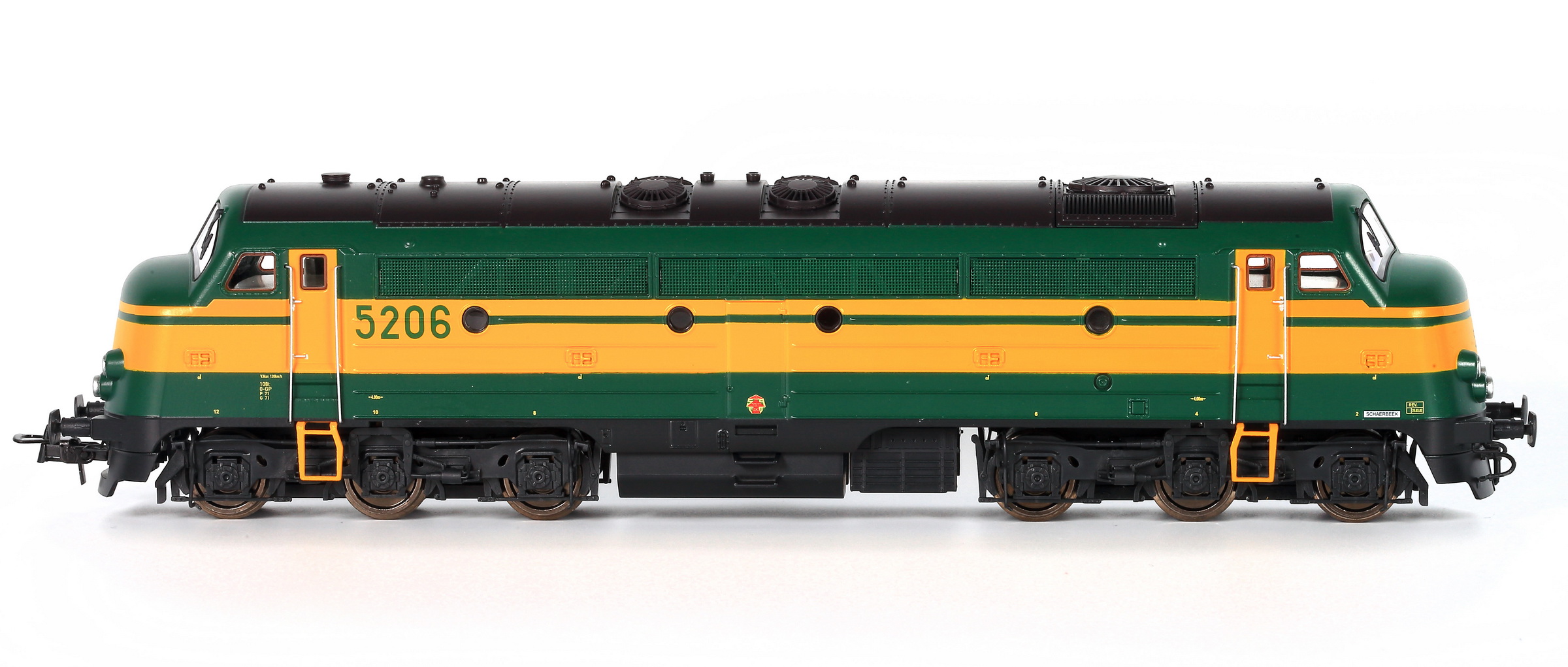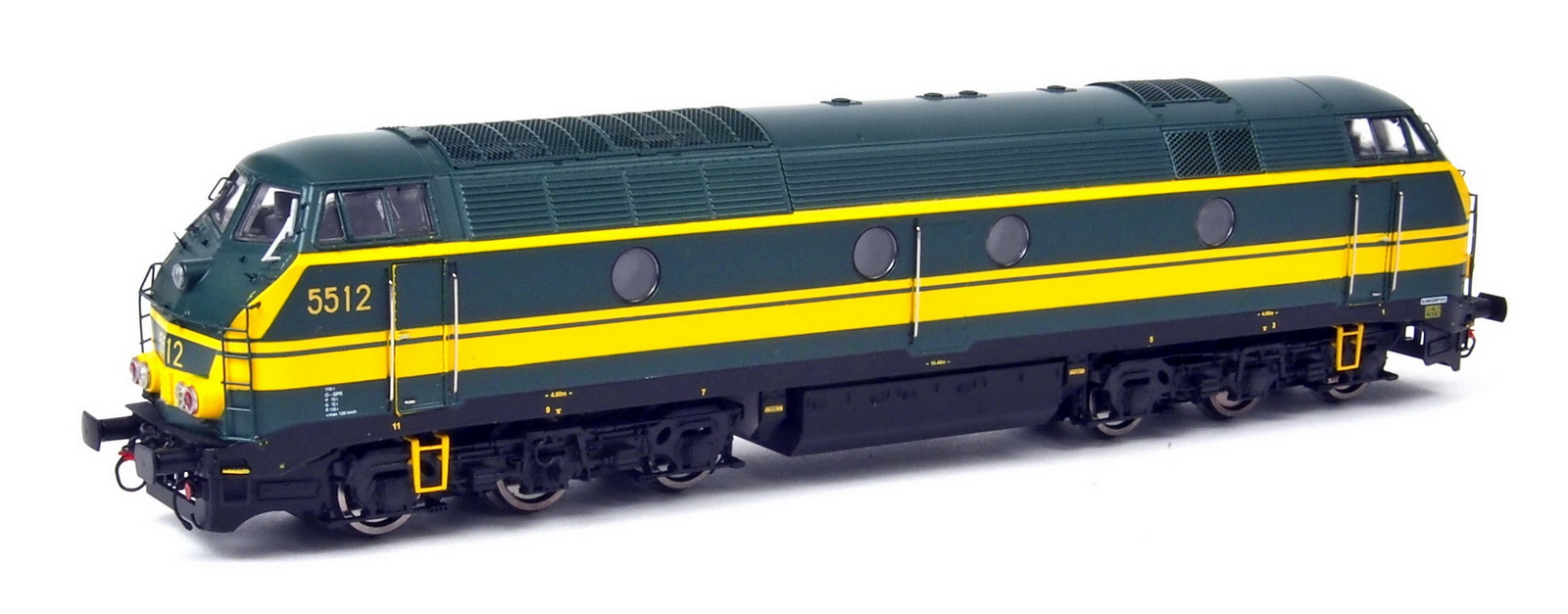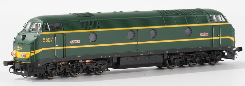 | | | VB-3603-02 de 2022 = 5114, du dépôt de Schaerbeek, Locomotive diesel électrique de type Co'Co', châssis noir, livrée verte 1970, porte jaunes, 5 phares, Ep. IV, DCC (upd 12/03/2022) |