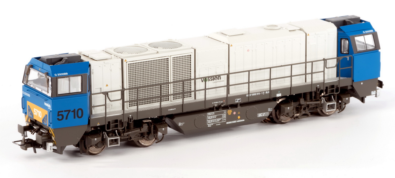 | | | T285 3540 = 7858, du dépôt de Antwerpen, Locomotive diesel hydraulique de type BB, livrée dite nouvelle livrée, grise, faces avant jaunes, ligne bleue au-dessus du châssis, Ep. V, AC, Digital Sound (upd 28/06/2015) |