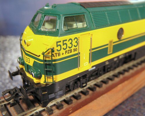 | | | T285 = 7755, du dépôt de Kinkempois, Locomotive diesel hydraulique de type BB, livrée dite nouvelle livrée, grise, faces avant jaunes, ligne bleue au-dessus du châssis, Ep. V, série spéciale de ATF Kinkempois, 50 exemplaires (upd 20/06/2015) |
