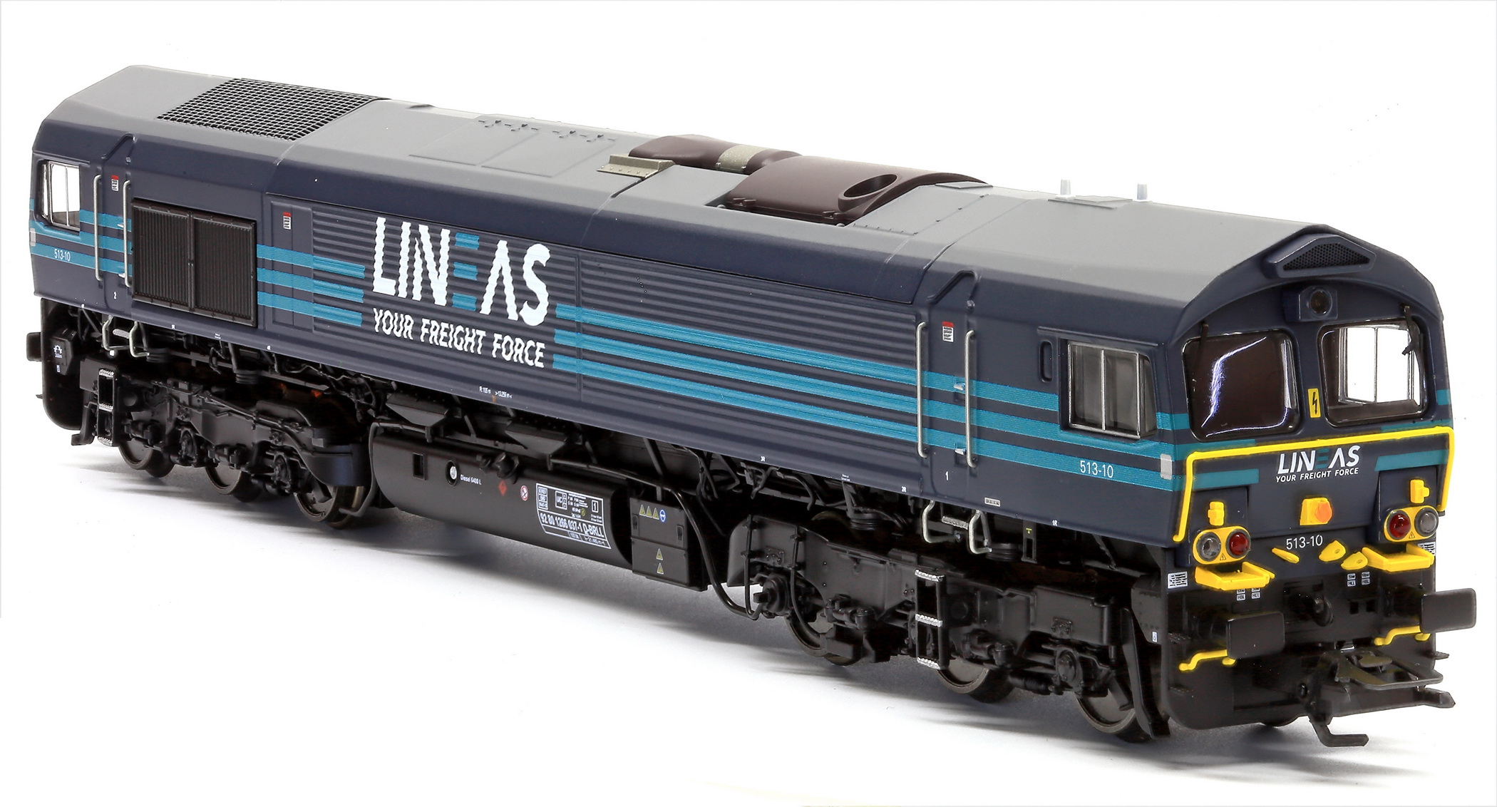 | | | | VB-3690-04 de 2025 = 5180, Locomotive diesel électrique de type Co'Co', châssis noir, livrée bleue, lignes blanche (Ventura), 5 phares, Ep. VI, AC Digital (upd 23/10/2025) |