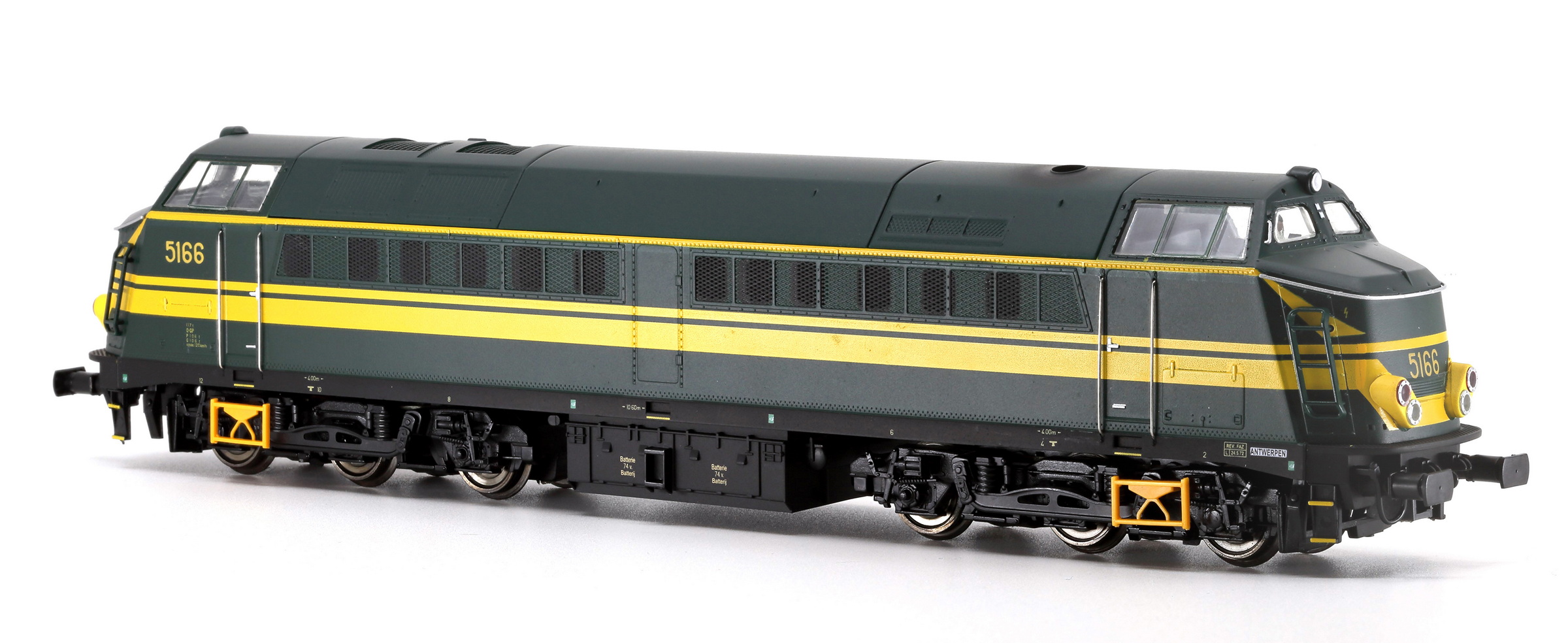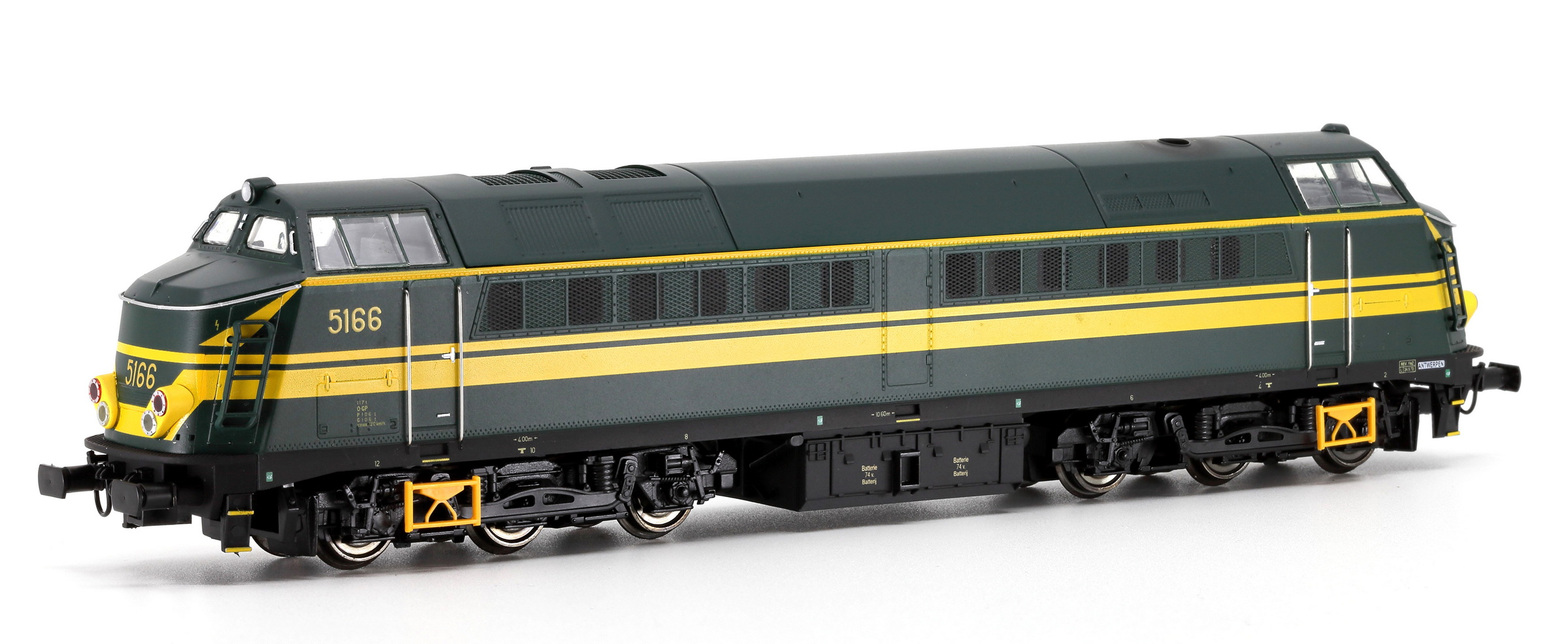 | | | | VB-3611-01 de 2026 = 5160, du dépôt de Hasselt, Locomotive diesel électrique de type Co'Co', châssis noir, livrée verte origine, 3 phares, plaques constructeur, lampes de veille, Ep. IV, DC (upd 02/02/2026) |