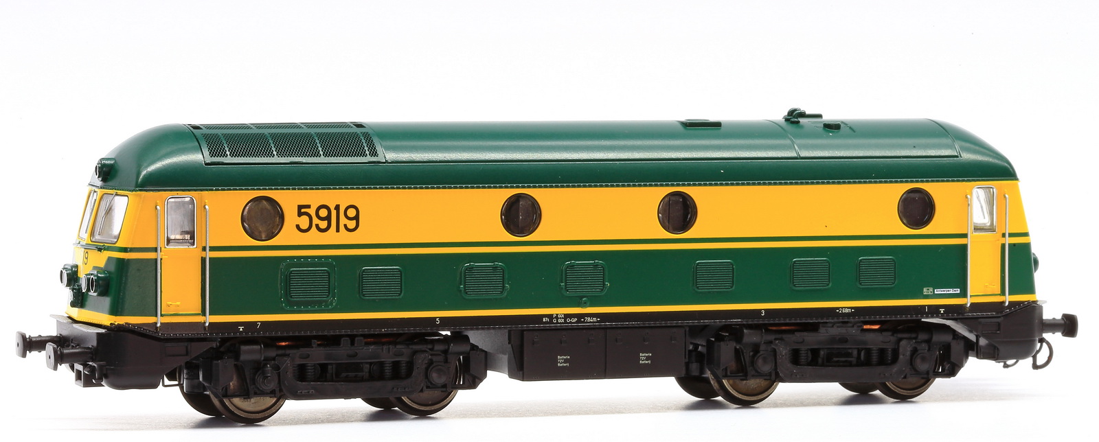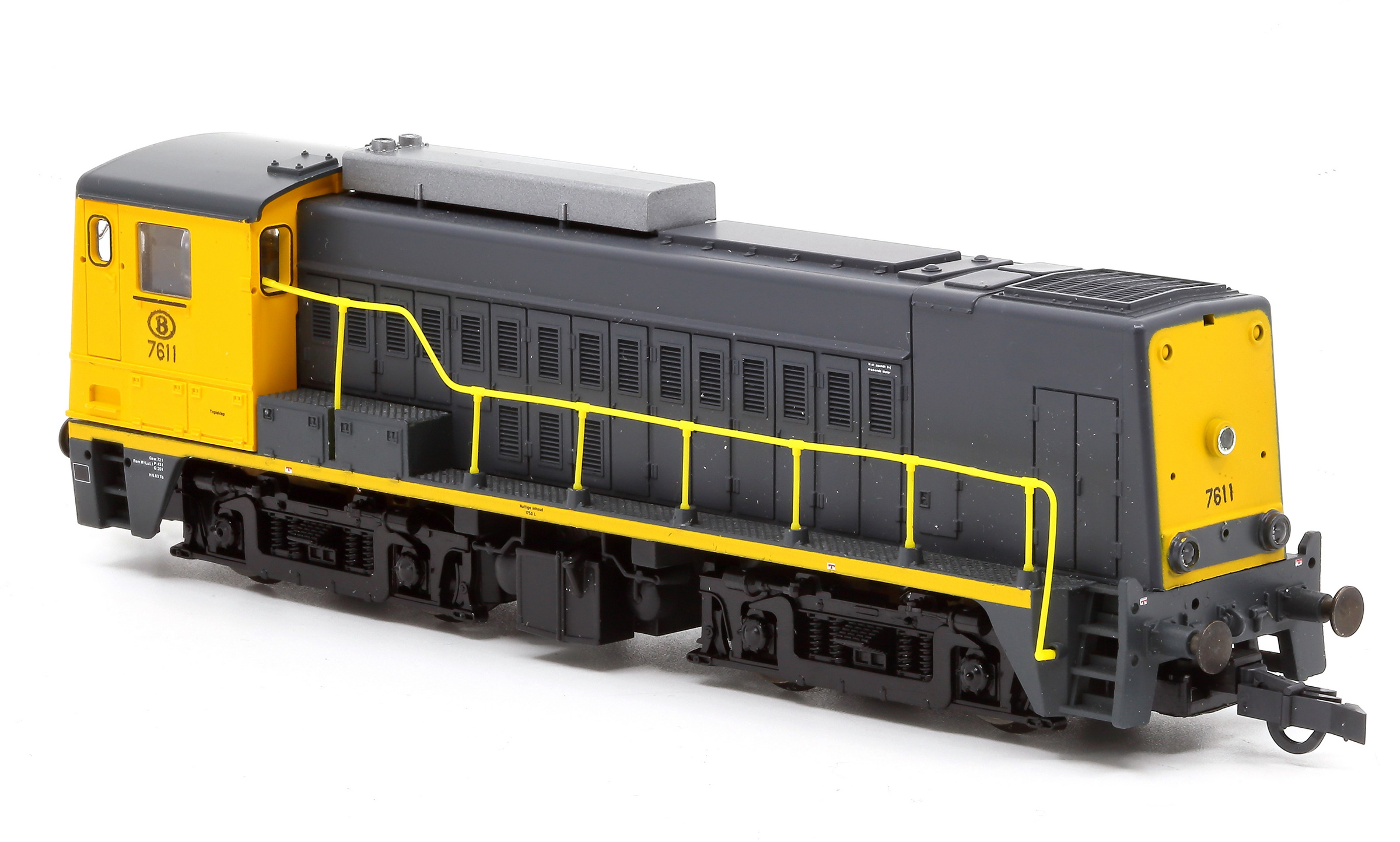 | | | T285 4901 = 7800, du dépôt de Merelbeke, Locomotive diesel hydraulique de type BB, livrée dite nouvelle livrée, grise, faces avant jaunes, ligne bleue au-dessus du châssis, Ep. V, 101 exemplaires, DCC, Sound (upd 27/01/2019) |