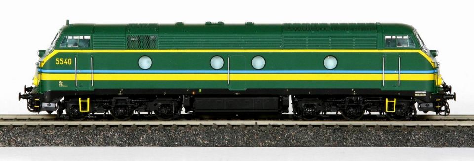 | | | VB-3603-03 de 2022 = 5114, du dépôt de Schaerbeek, Locomotive diesel électrique de type Co'Co', châssis noir, livrée verte 1970, porte jaunes, 5 phares, Ep. IV, DCC Sound (upd 12/03/2022) |