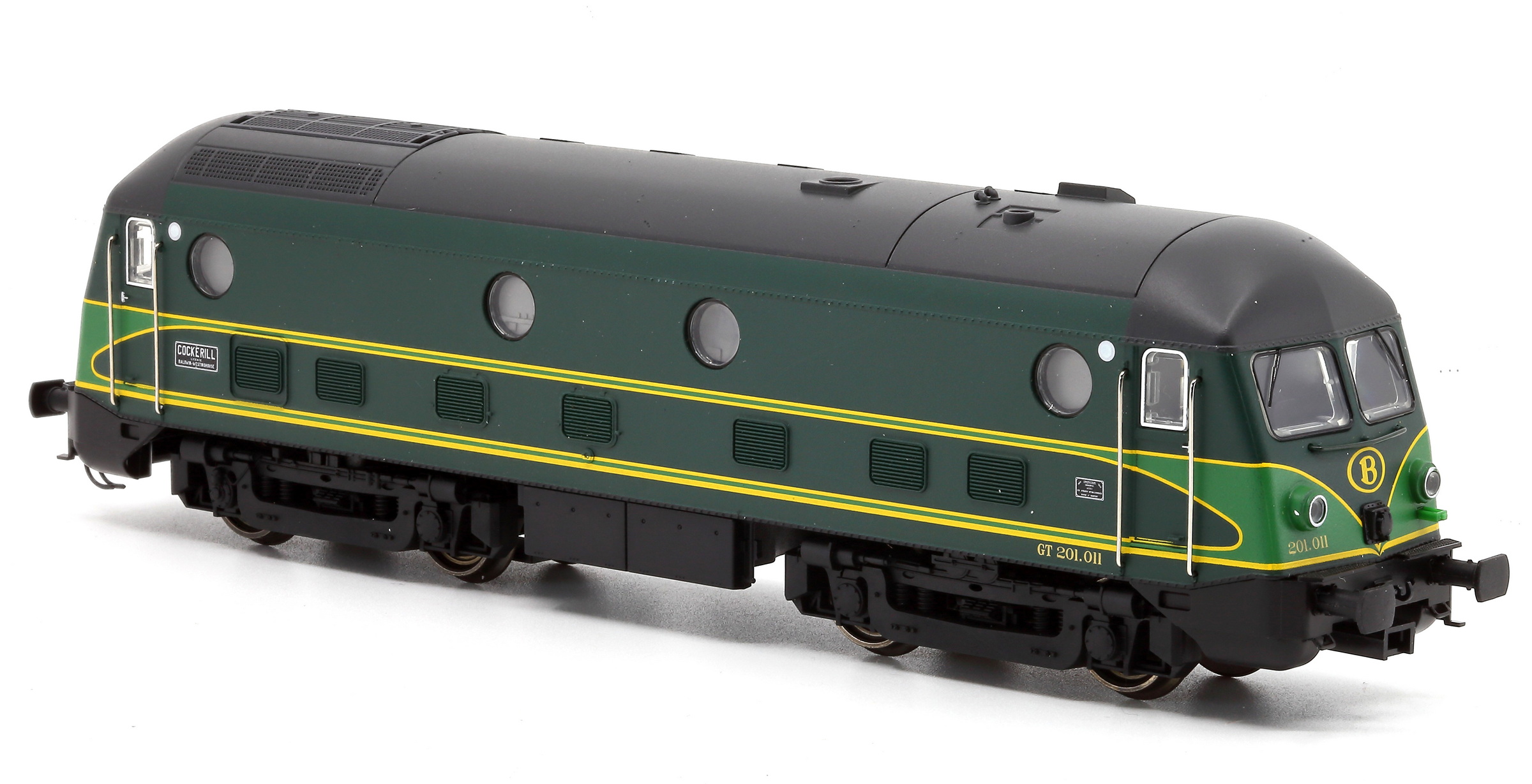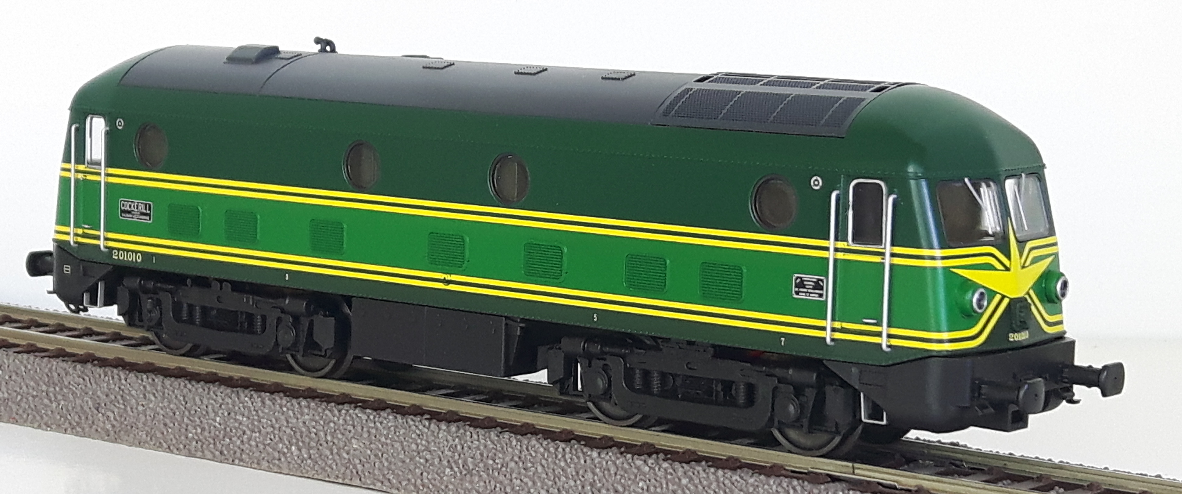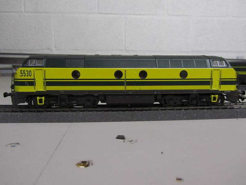 | | | 20.801 de 2011 = .5502, du dépôt de Kinkempois, Locomotive diesel électrique de type Co'Co', châssis noir, livrée jaune avant bandeau vert, Ep. IV - V, DCC (upd 13/07/2014) |