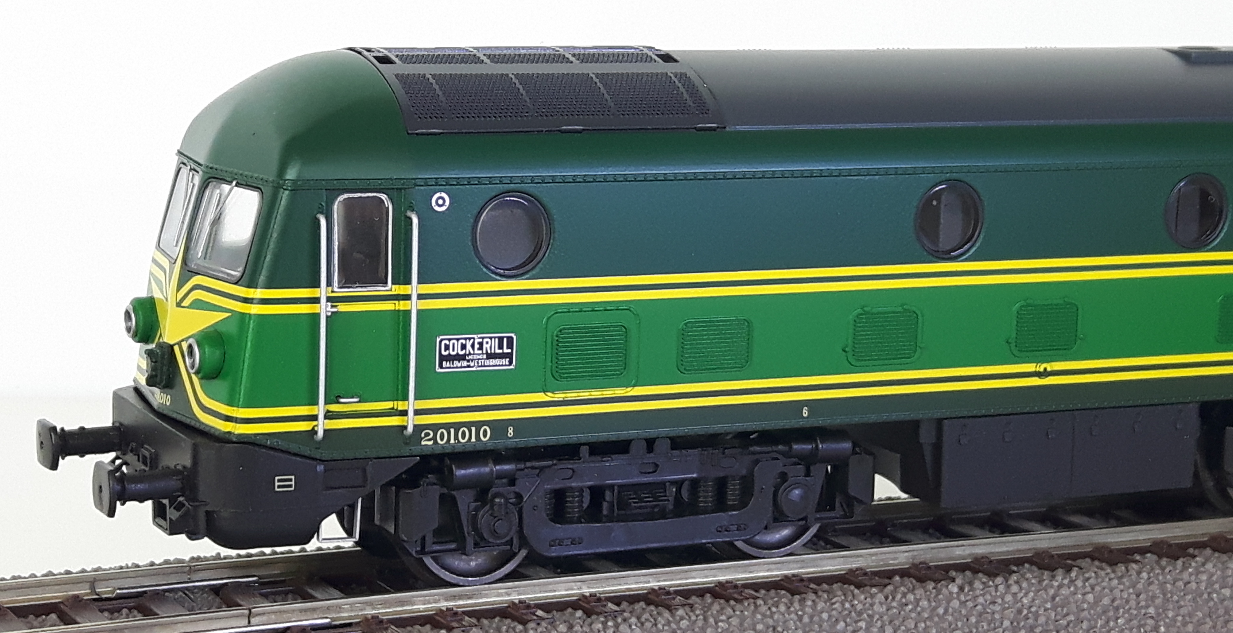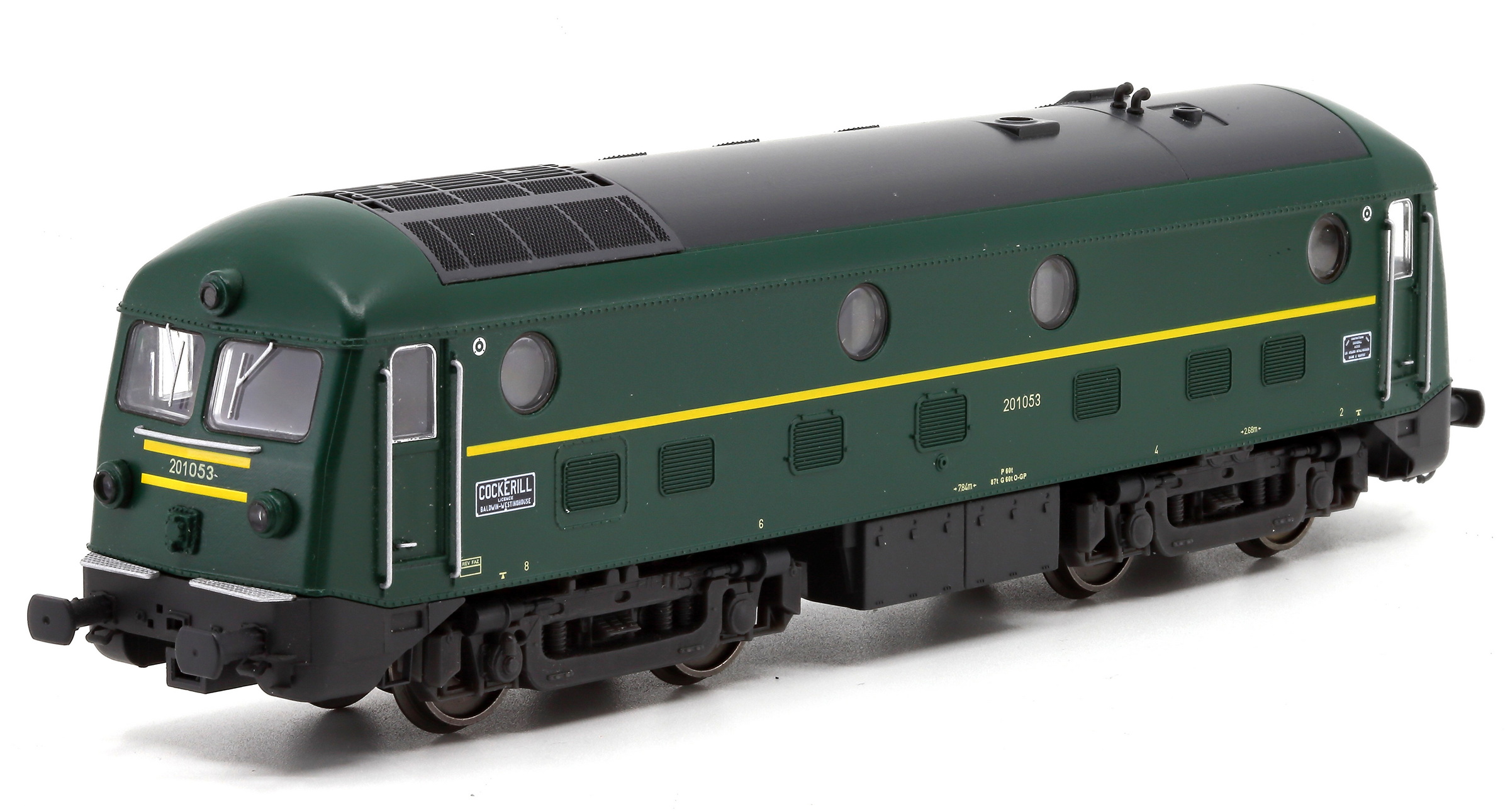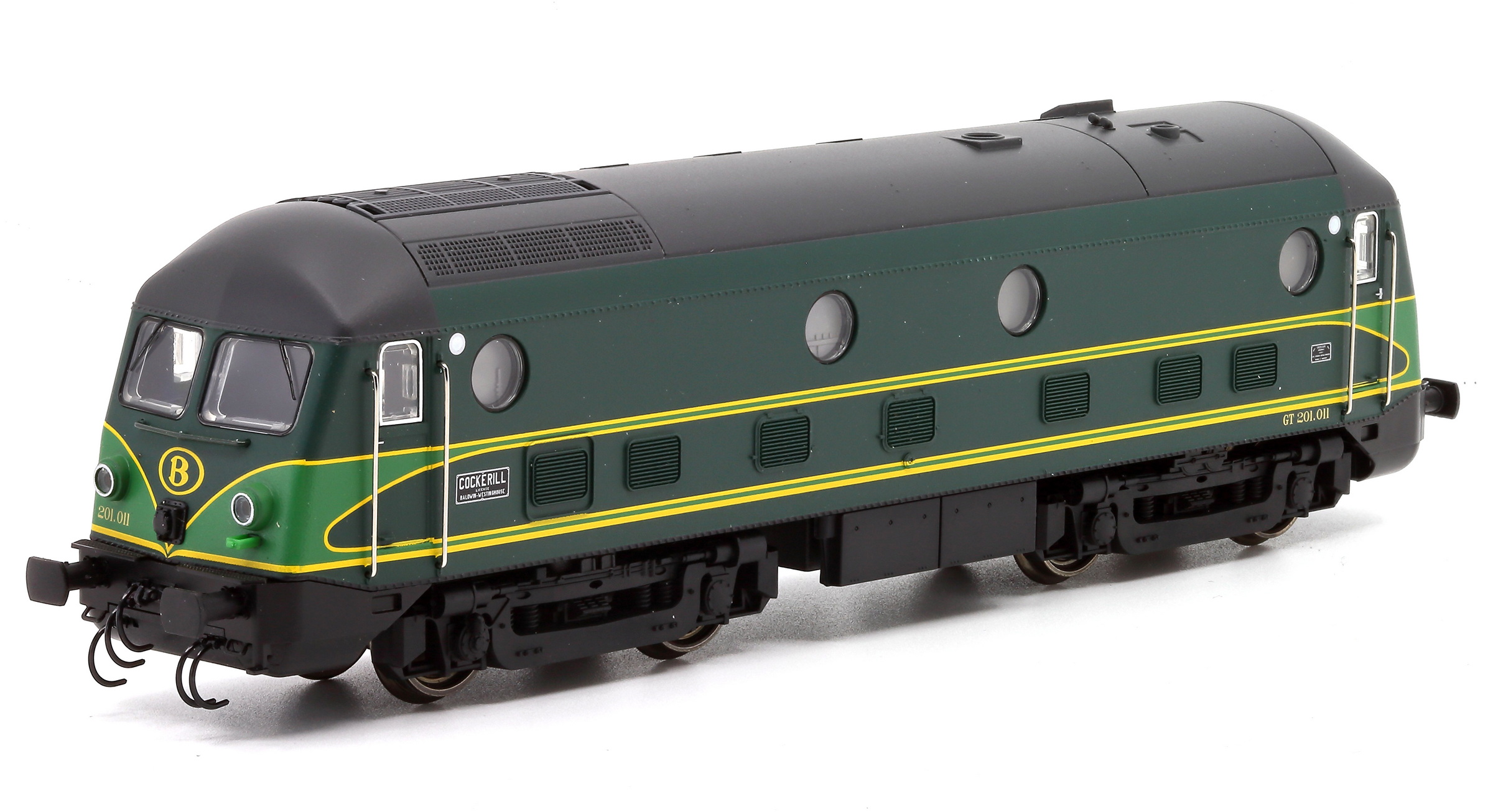 | | | 20.801 de 2011 = .5502, du dépôt de Kinkempois, Locomotive diesel électrique de type Co'Co', châssis noir, livrée jaune avant bandeau vert, Ep. IV - V, DCC (upd 13/07/2014) |