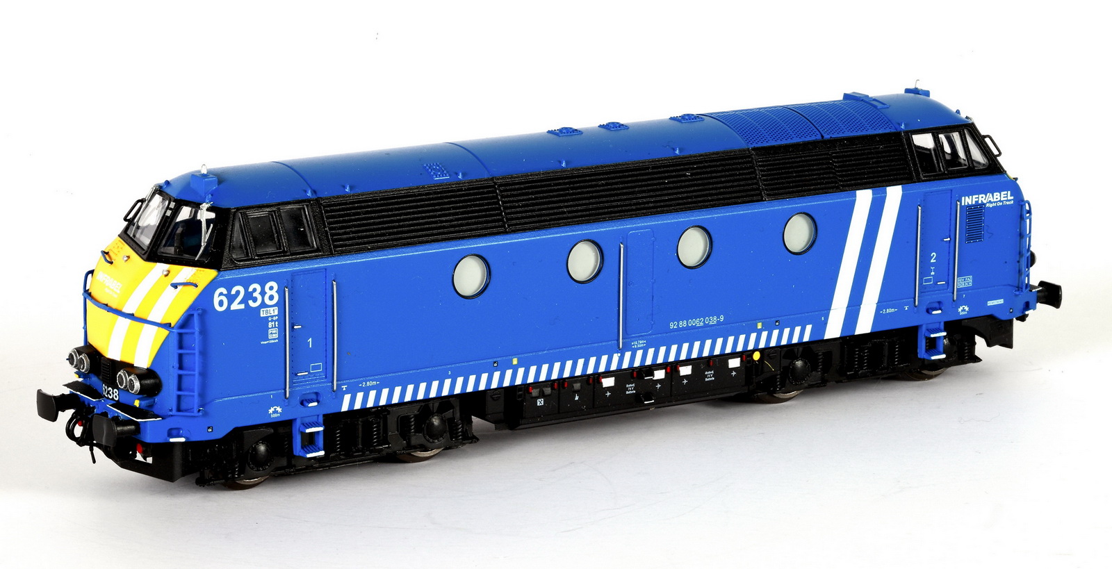 | | | | VB-9134-03 de 2026 = 6207 (92 88 0062 007-4 B-INFBL), Livrée Infrabel, caisse bleue, deux larges bandes obliques blanches, 3 phares LED, Ep. VI, DCC, Sound (upd 02/02/2026) |