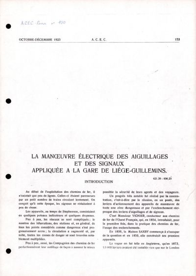 | ACEC Revue - 100- La manoeuvre électrique des aiguillages et des signaux appliquée à la gare de Liège-Guillemins