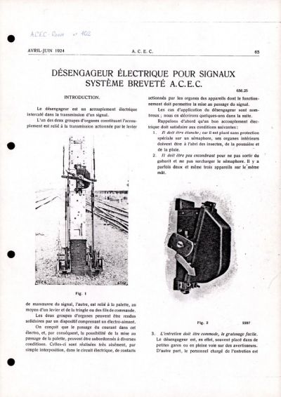 | ACEC Revue - 102- Désengageur électrique pour signaux système breveté A.C.E.C.