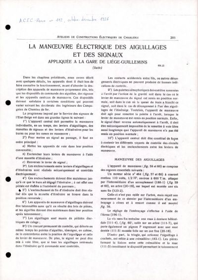 | ACEC Revue - 112- La manoeuvre électrique des aiguillages et des signaux appliquée à la gare de Liège-Guillemins (suite)