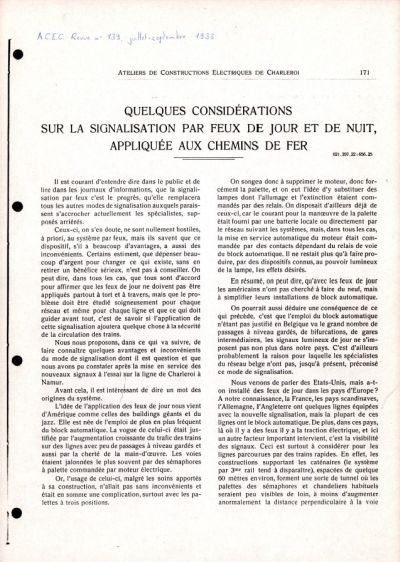 | ACEC Revue - 139- Quelques considérations sur la signalisation par feux de jour et de nuit, appliquée aux chemins de fer