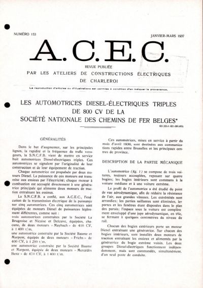 | ACEC Revue - 153- Les automotrices Diesel-électriques triples de 800 CV de la Société Nationale des Chemins de fer Belges