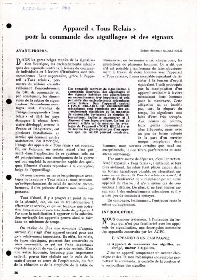 | ACEC Revue - 194801- Appareil "Tous Relais" pour la commande des aiguillages et des signaux