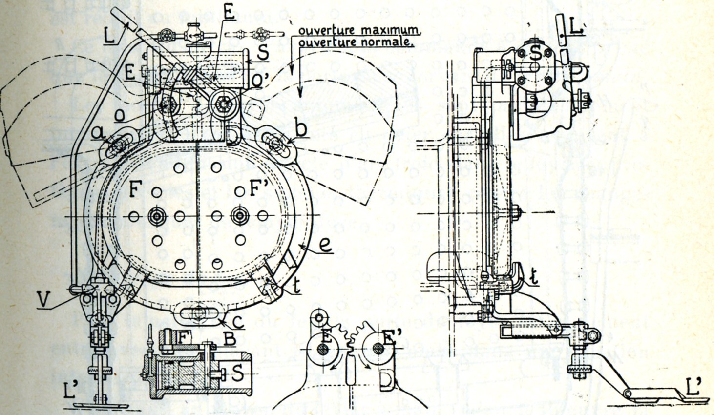 Remarquons que la disposition qui consiste à grouper ainsi les soupapes par paire a l'avantage de rendre impossible le calage des soupapes par le machiniste, car s'il voulait charger une des soupapes, il déchargerait l'autre.