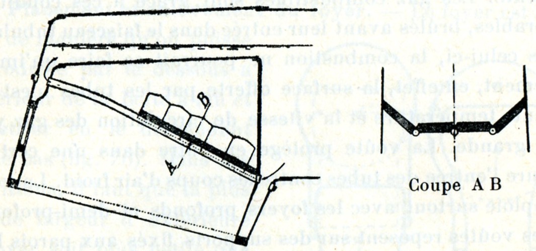 D'un autre côté, lorsque la surface de grille est très développée, on peut, quand le diamètre des roues est faible, donner au foyer la forme débordante de la fig. 50 dans laquelle les parois latérales sont obliques.