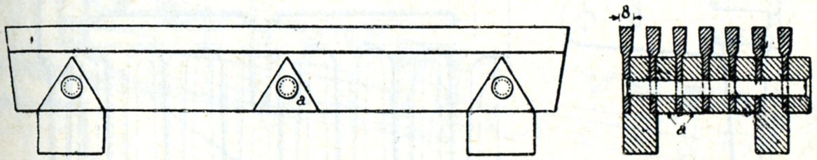 Les entretoises sont placées à des distances qui varient de 80 à 110 mm, elles supportent donc chacune la pression qui s'exerce sur environ un décimètre carré (exemple : 100 cm² X 18 kg = 1800 kg).