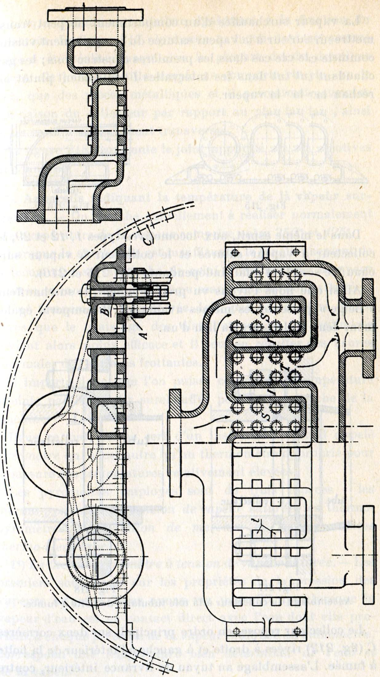 La sortie de la vapeur par les soupapes produit souvent un bruit assourdissant, aussi gênant pour le public que pour le personnel de la machine, c'est pourquoi les soupapes Coale sont actuellement pourvues d'un «silencieux» représenté fig.232.