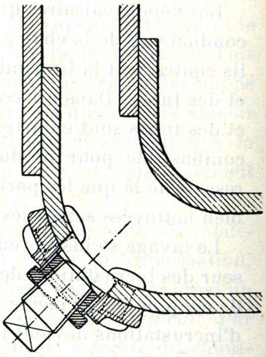 On comprend dès lors qu'il importe au plus haut point de remplacer immédiatement les entretoises rompues ; or, comme d'une part l'inspection par les trous de lavage ne suffit pas, que d'autre part l'essai au marteau ne donne que des indications incomplètes et qu'il ne se fait d'ailleurs que lors des visites périodiques, on recourt au moyen suivant :