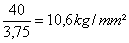(note 075) Si l'on admet que la charge de rupture de l'acier employé est seulement de 40 kg/mm² et si l'on adopte un coefficient de sécurité égal à 3,75, on trouve pour la résistance de la tôle :