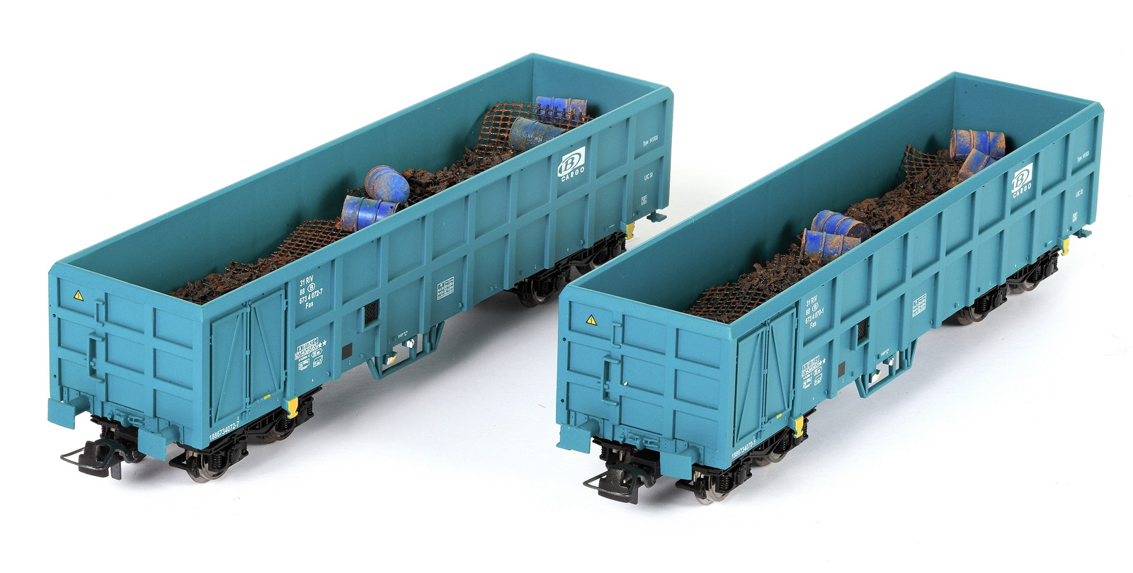 | | | 40.002-02 = 01 88 501 2 034-6, wagon tombereau à 2 essieux, châssis noir, caisse brune, chargé de ferraille, longueur : 11,5 cm, Ep. IV, série spéciale de Van Biervliet, DC (upd 20/03/2012) |