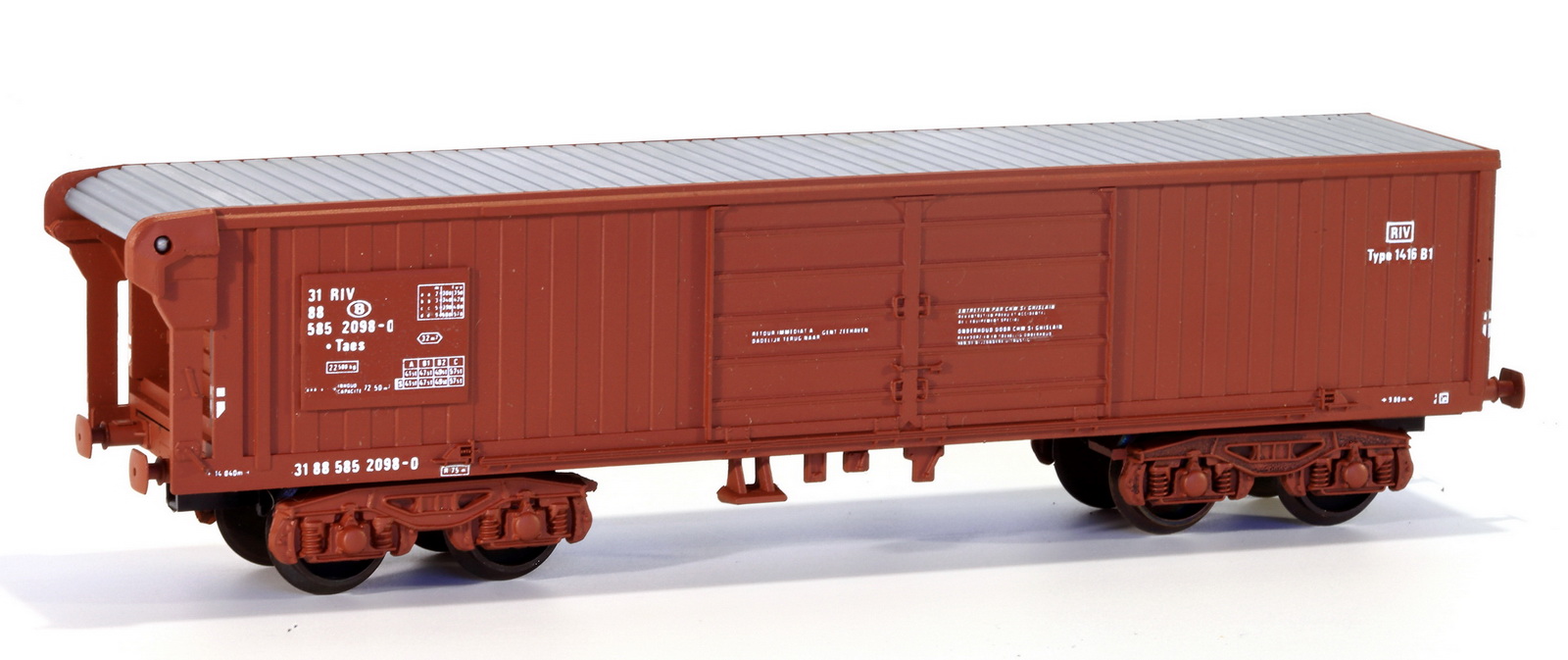 | | | 3088 de 1988 = 21 88 501 8 524-8, Type 1215B0, wagon tombereau à 2 essieux, châssis noir, livrée en brun rouge, Ep. III - IV, série spéciale de Edition H.K., DC (upd 08/05/2011) |