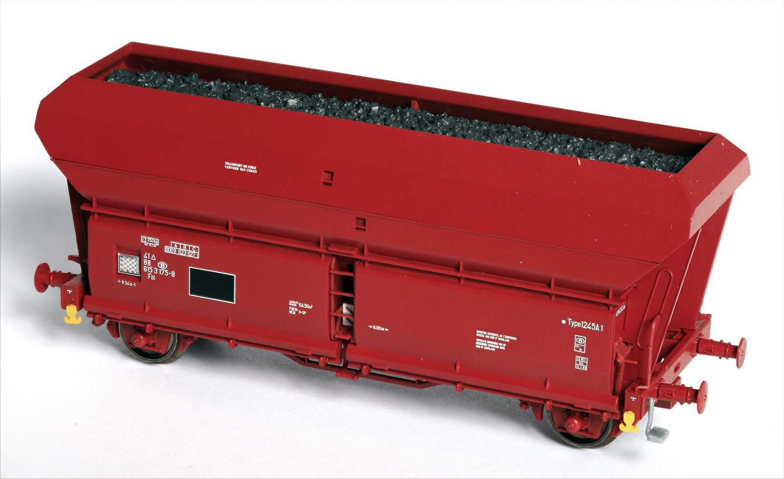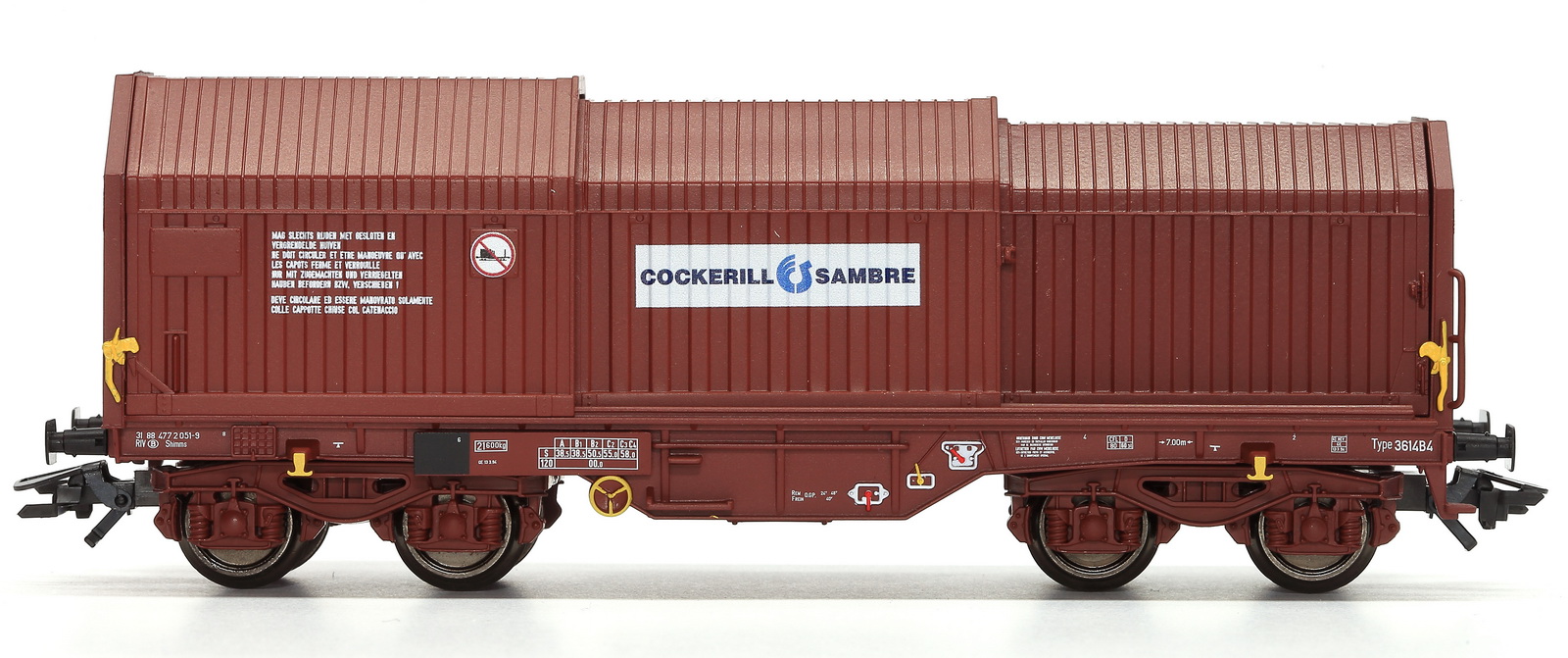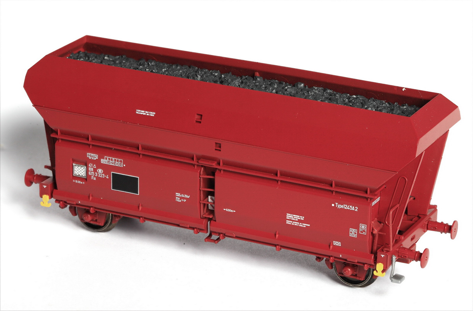 | | | 40.004-01 = 2 289 046, Type 1215B, wagon tombereau à 2 essieux, châssis noir, caisse brune, chargé de charbon, longueur : 11,5 cm, Ep. IIIb, série spéciale de Van Biervliet, DC (upd 20/03/2012) |