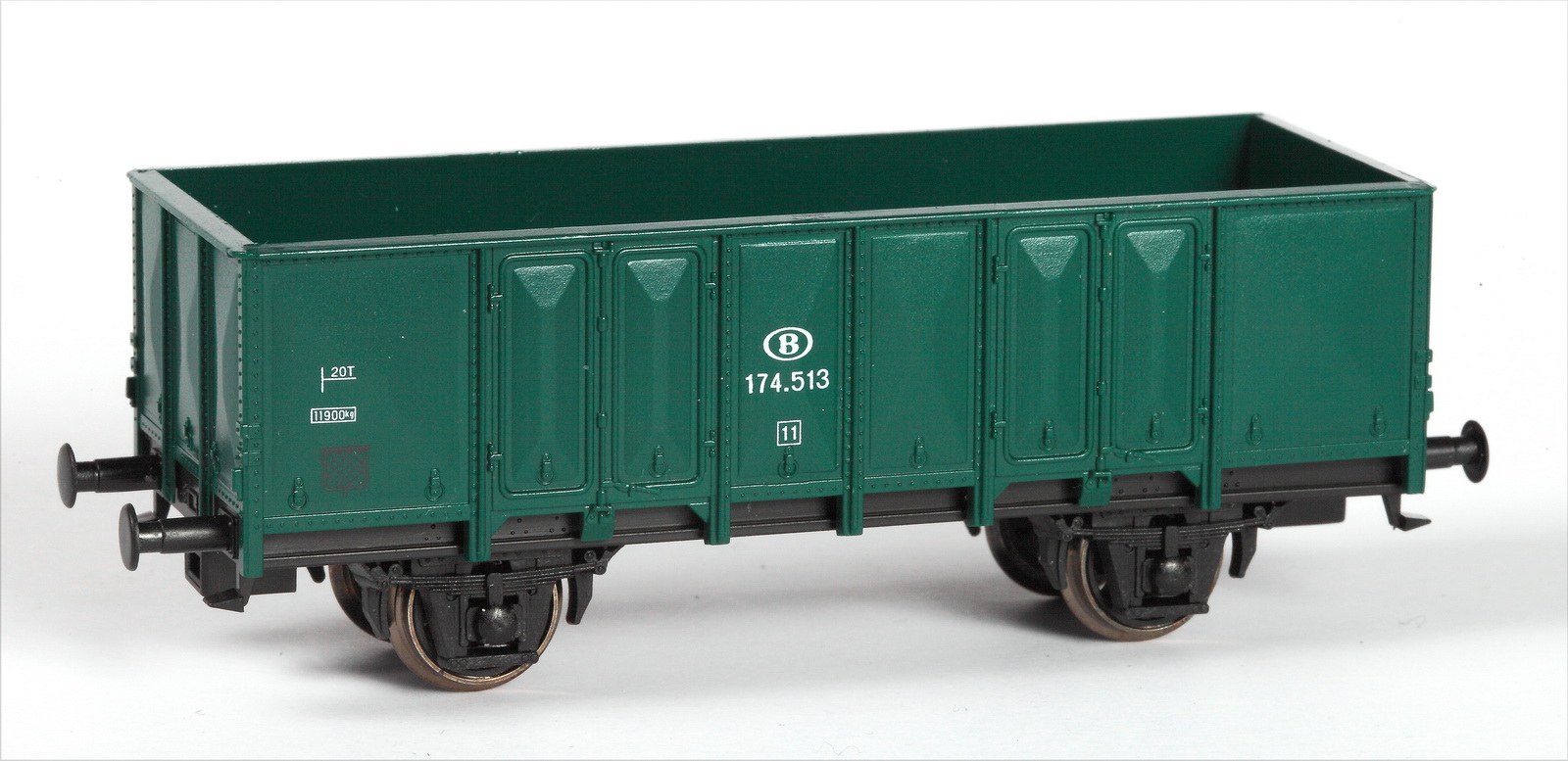| | | 40.006-02 = 01 88 501 4 360-5, wagon tombereau à 2 essieux, châssis noir, caisse verte, chargé de sable, longueur : 11,5 cm, Ep. IV, série spéciale de Van Biervliet, DC (upd 20/03/2012) |