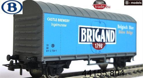 | | | 86004 de 1986 = 01 88 803 9 637-7, Wagon couvert à 2 essieux, caisse blanche avec inscription "Leffe - Bière belge - Belgisch Bier", 500 exemplaires, AC (upd 24/02/2014) |