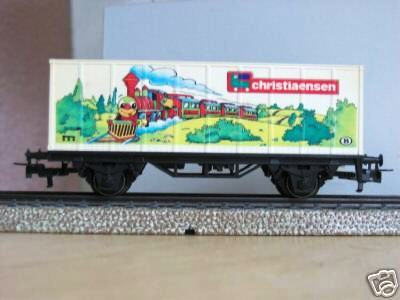 | | | 93504 de 1993 = , wagon porte-container à 2 essieux, châssis noir, container blanc avec oiseaux et étoiles, inscription "CHRISTIAENSEN", 500 exemplaires, AC (upd 25/02/2011) |