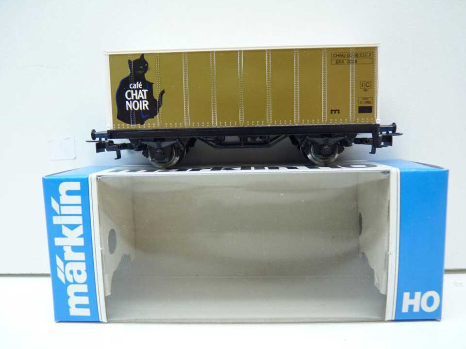 | | | 88003 de 1988 = ZWKU 00 88 23, wagon porte-container à 2 essieux, châssis noir, container blanc /côtés dorés avec inscription "CAFE CHAT NOIR - ZWARTE KAT", 500 exemplaires, AC (upd 24/10/2011) |