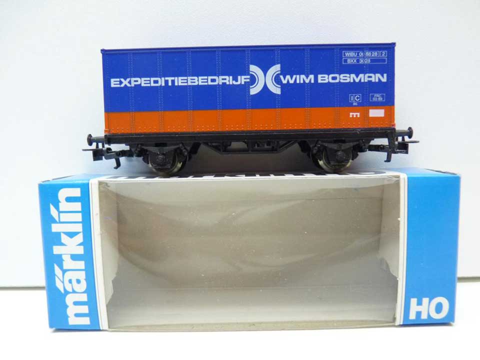 | | | 90712 de 1990 = WIBU 00 88 28, wagon porte-container à 2 essieux, châssis noir, container blanc avec inscription "Expeditiebedrijf Wim Bosman", 500 exemplaires, AC (upd 24/10/2011) |