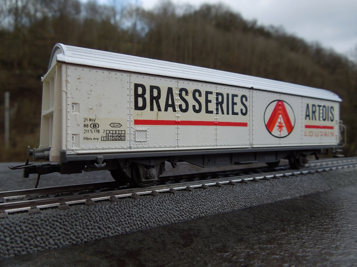 | | | | 4340 E.1B de 1983 = 21 88 211 5 124-9, Wagon couvert à deux essieux, caisse blanche, inscription noire et rouge "BRASSERIES ARTOIS", Ep. IV, DC (upd 22/03/2021) |